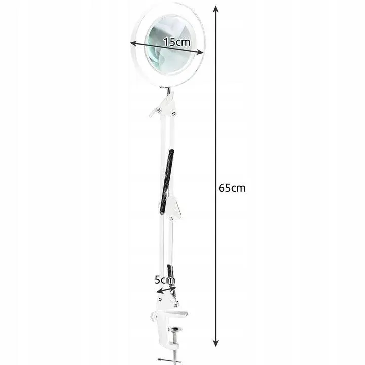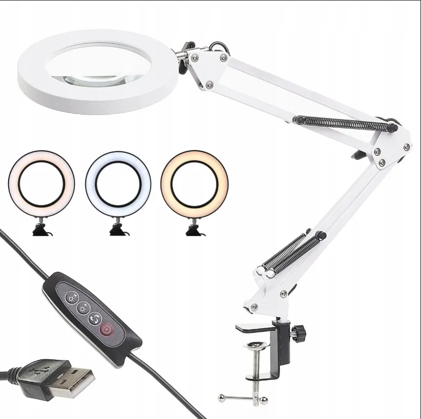 Súčasťou lampy je integrovaná lupa s 5-násobným zväčšením a ohniskovou vzdialenosťou 150 mm, ktorá umožňuje precíznu prácu s jemnými detailmi. Napájanie je riešené cez 12V zdroj s USB káblom dlhým 1,4 m, pričom spotreba dosahuje 12 kWh/1000 h.