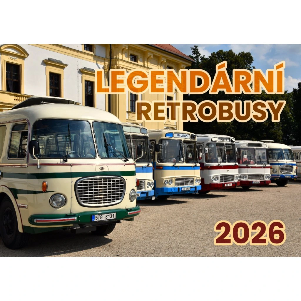 Úvod » Podľa vydavateľov » E-Doprava (CZ) » Kalendár nástenný 2026 A3 Legendárne retrobusy