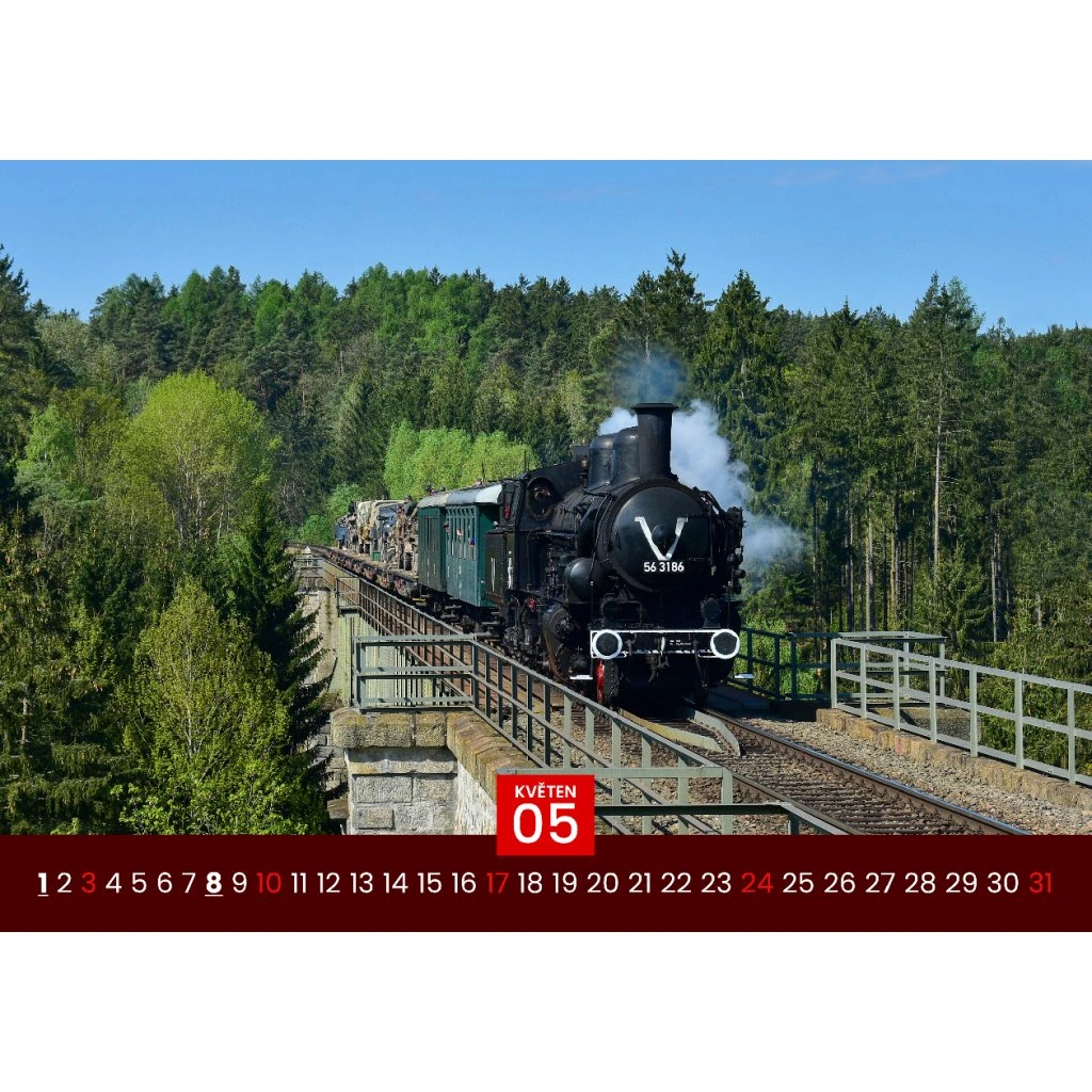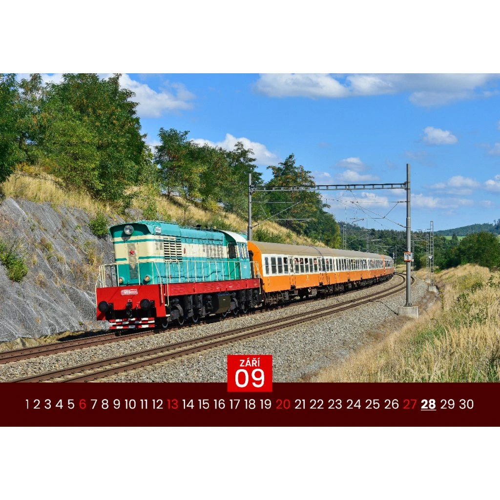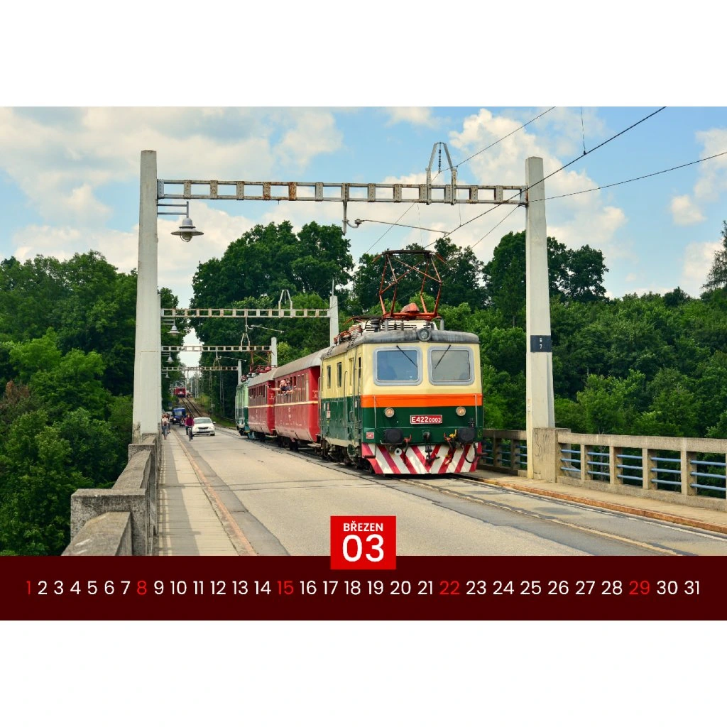 Kalendár formátu A3 spája výtvarnú eleganciu s historickými fotografiami dopravných vozidiel z minulých období. Každý mesiac ponúka pôsobivý pohľad na železničnú minulosť. Tlačený ofsetom na kvalitný papier a vybavený kovovou väzbou a háčikom, je ideálny pre nostalgikov, modelárov a zberateľov historickej techniky.