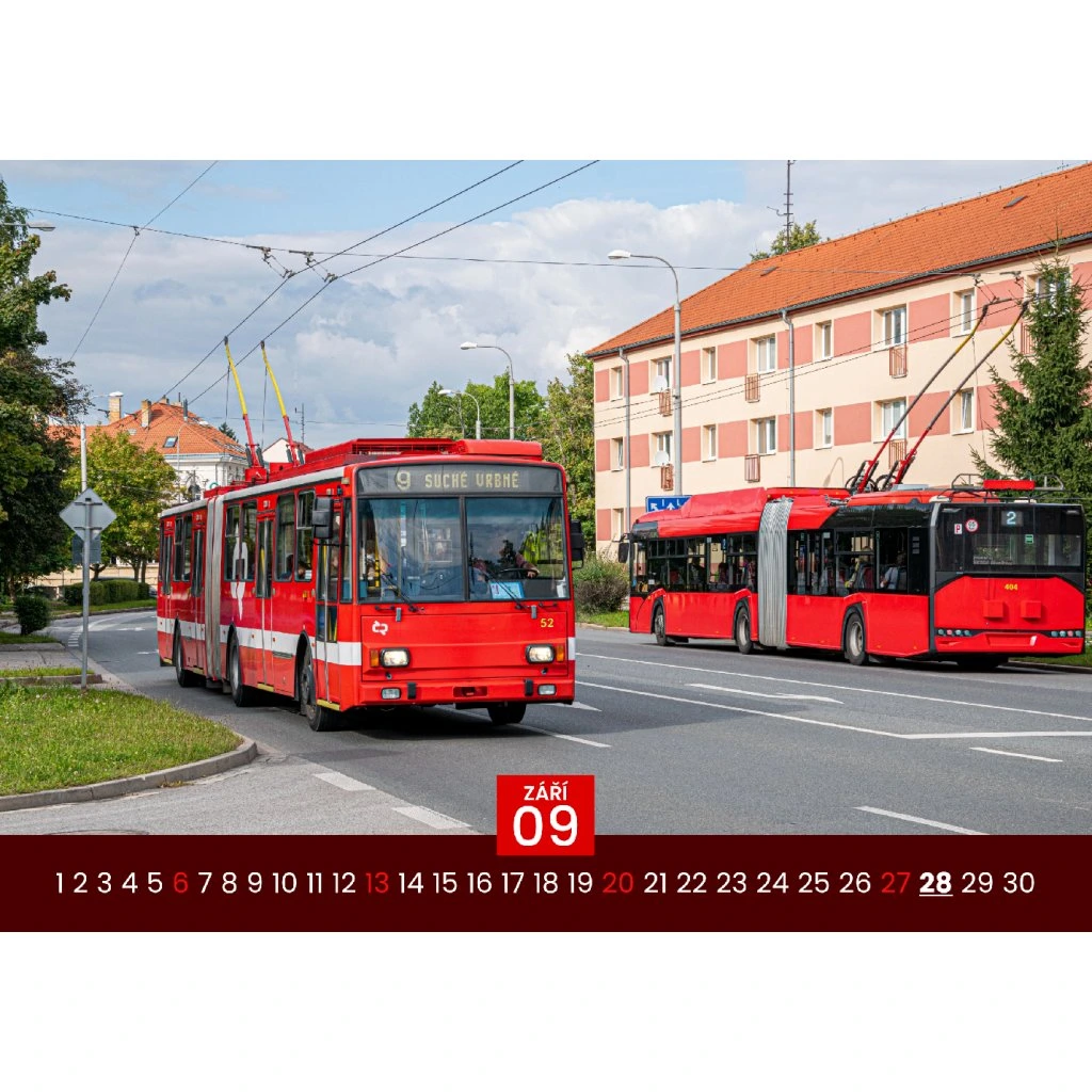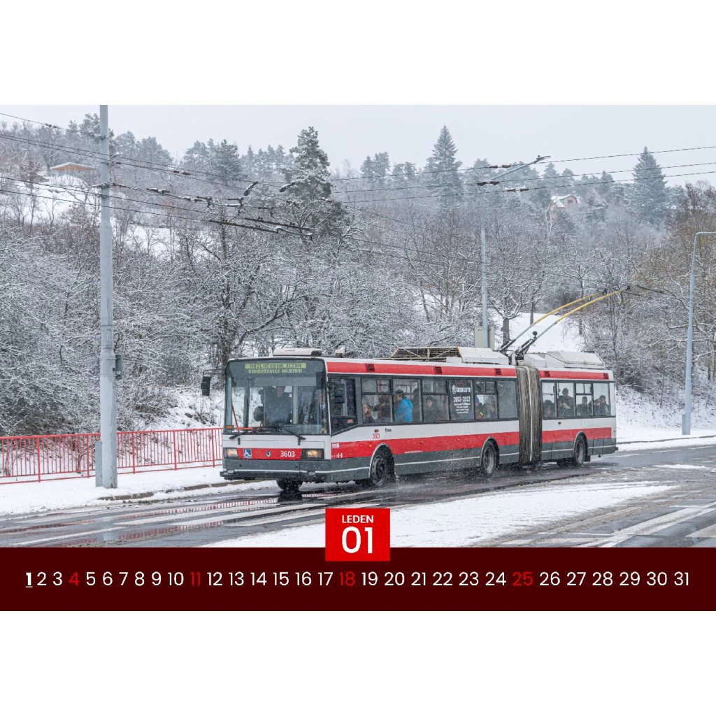 Atraktívny nástenný kalendár vo formáte A3 pre rok 2026, venovaný najobľúbenejším typom trolejbusov, ktoré jazdili (a niektoré ešte stále jazdia) v československých a slovenských mestách. Kalendár zachytáva ikonické vozidlá ako Škoda 14Tr, 15Tr, Sanos, 21Tr či modernizované varianty T6A5 v autentickom mestskom prostredí.