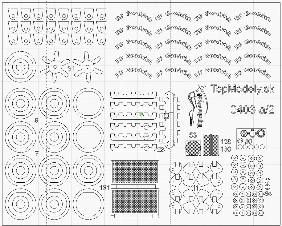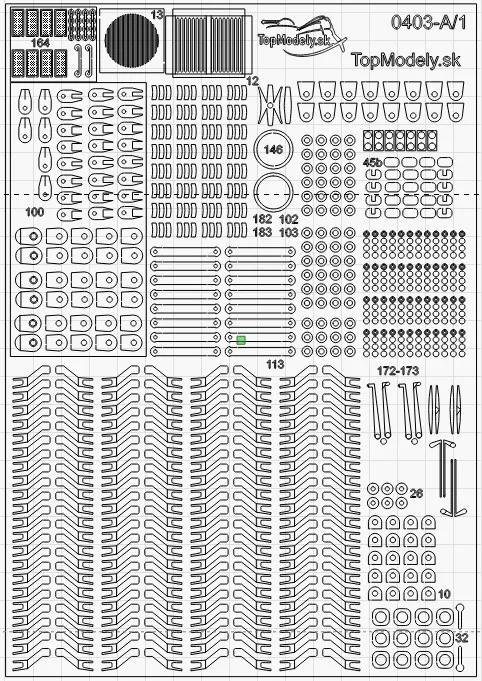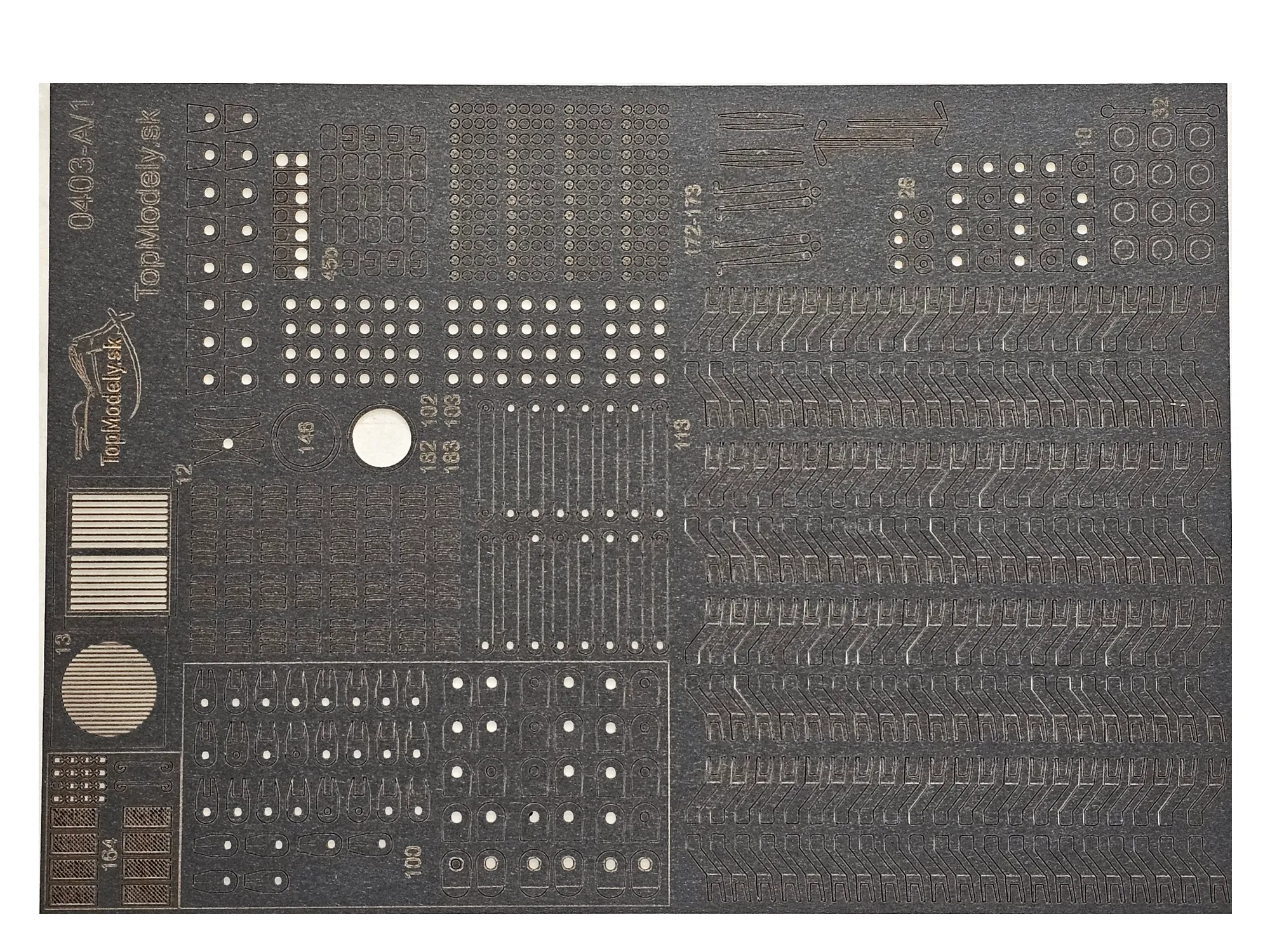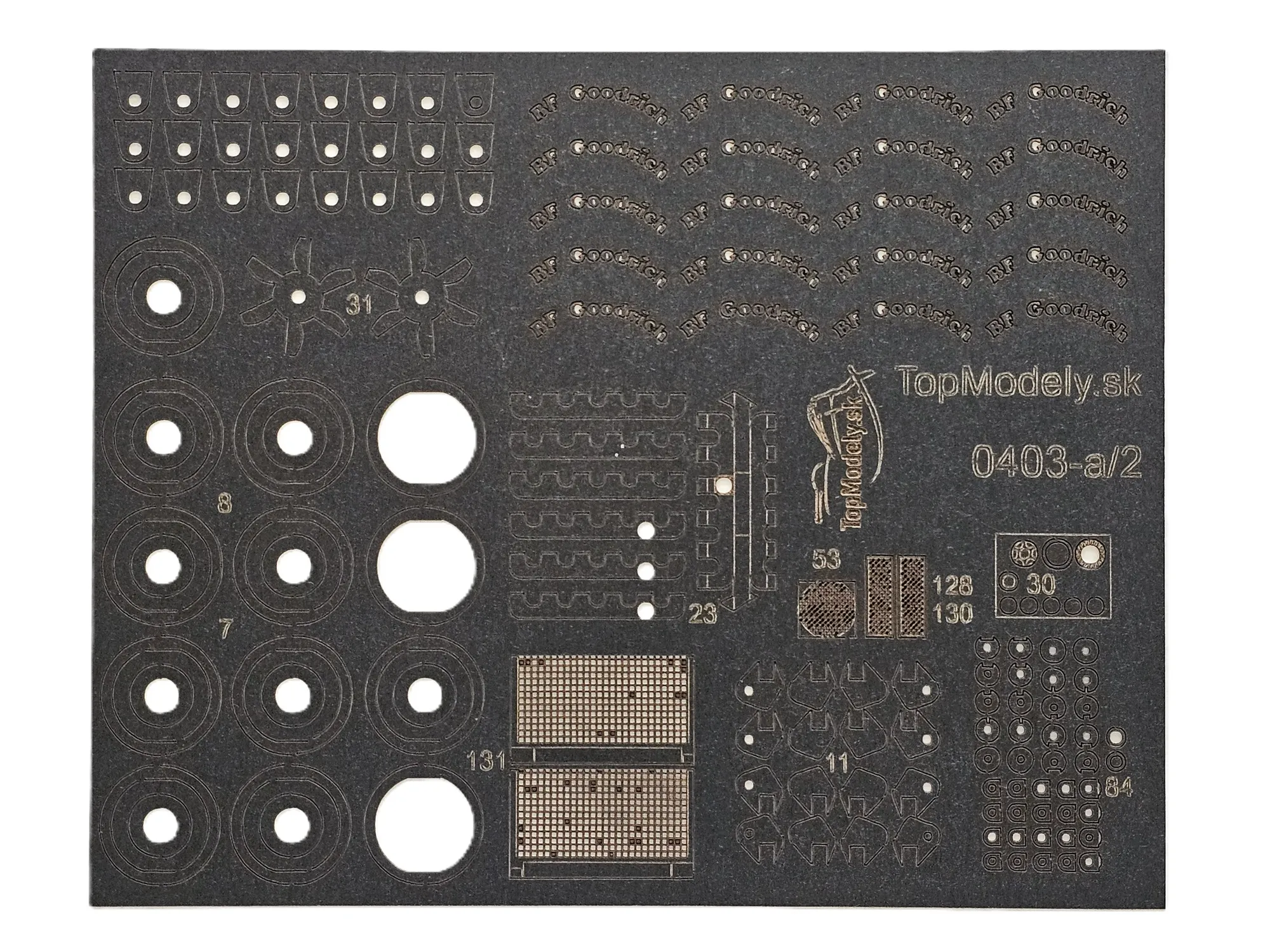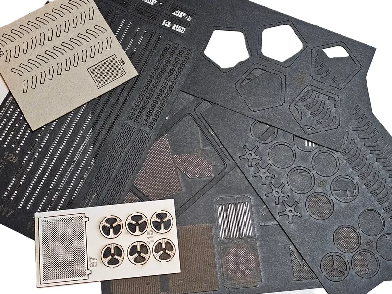 Doplnok je laserom vypálený do špeciálneho uhlíkového papiera hrúbky 0,35mm a kartonu o hrubke 0,5mm a pivného kartónu 1mm. Je možné ho použiť priamo, či nafarbiť ho. Niektoré diely sú voliteľne použitelné a sú pálené vo viacerích hrúbkach. Niektoré nahrádzajú diel a niektoé ho dopĺňajú.