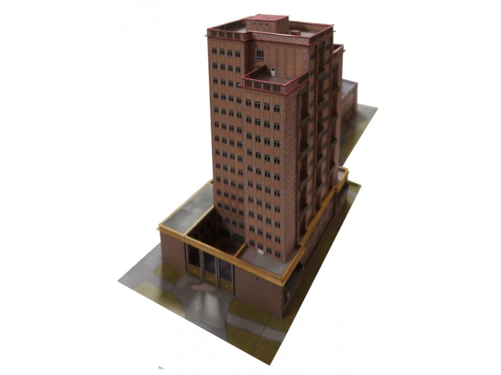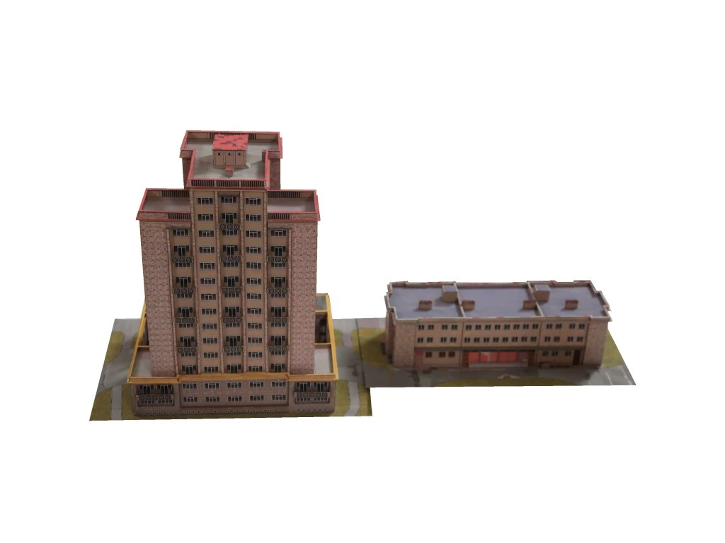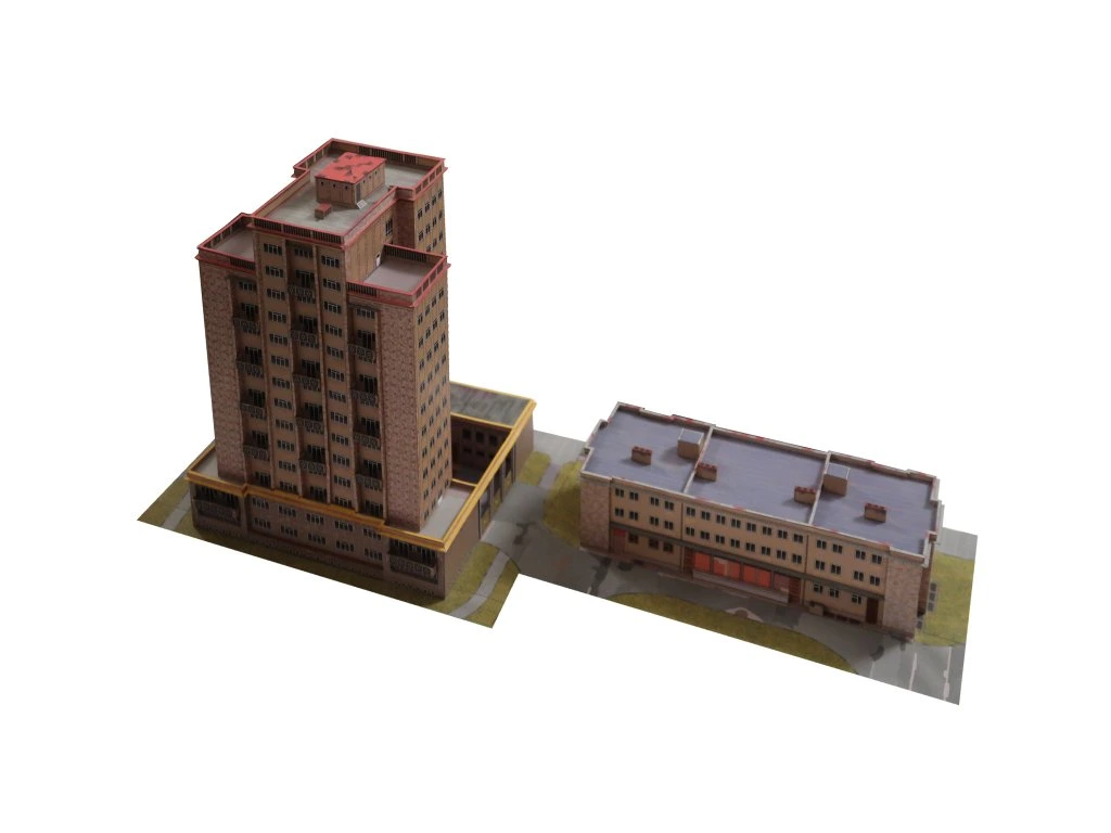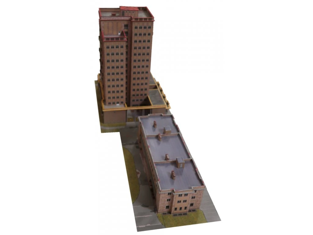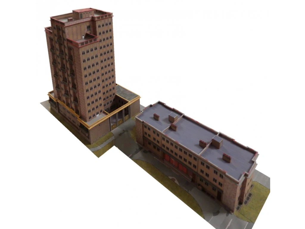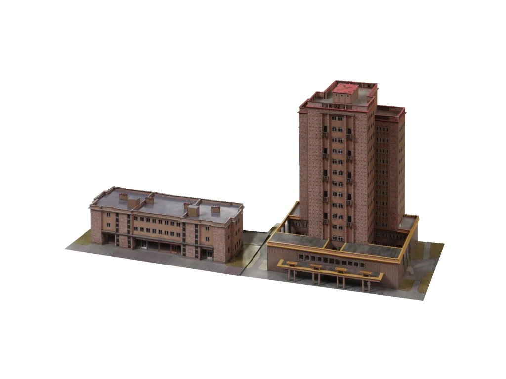 Model predstavuje výraznú stavbu z obdobia povojnovej výstavby v štýle nového klasicizmu. Dominantná vežová budova je doplnená prevádzkovou časťou, ktorú možno zostaviť v jednej zo štyroch variantov podľa vlastného výberu. Vhodné ako doplnok mestského prostredia alebo samostatný architektonický solitér.