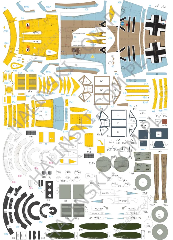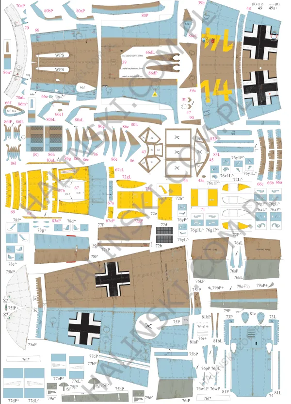 Papierový model má návod v polštine a obsahuje číslované diely a je tlačený ofsetom na stranách B4. Ofset je tlačová technika, pri ktorej sa farba na papier nanáša z tlačového valca, pomocou gumového valca, pretože guma sa lepšie priľne na nerovnosti papiera a dokáže teda vytlačiť aj najjemnejšie detaily. Narozdiel od atramentovej či laserovej tlače sa nerozpíja a neodlupuje pri následnej práci. Model je vytlačený na papieri s gramážou 160g/m2, teda dvojnásobnej hrúbke kancelárskeho papiera (tzv. modelárska štvrťka). Tento papier je štandardne používaný výrobcami modelov, pretože je na prácu najvhodnejší.