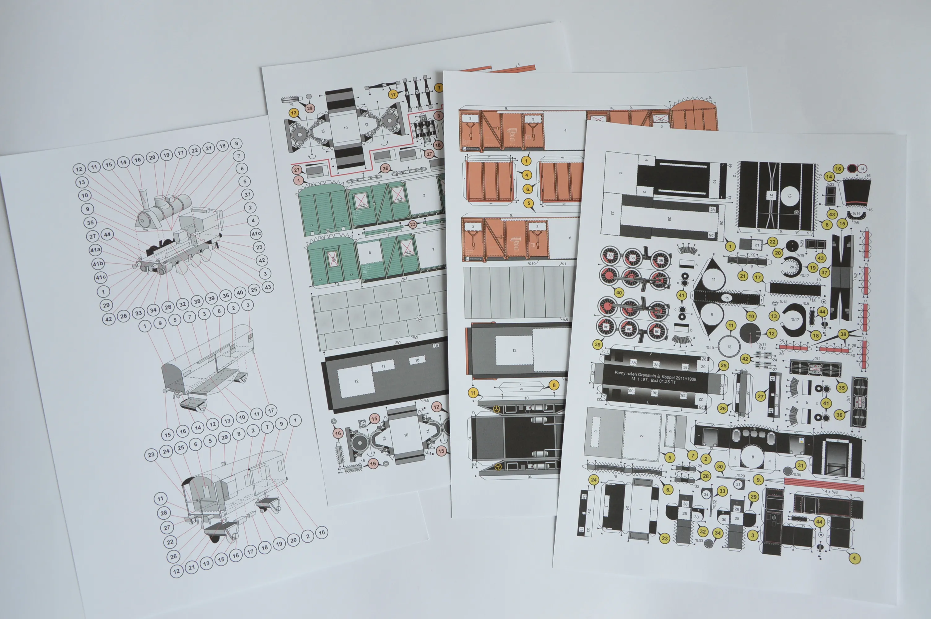 Papierový model má návod v slovenčine a obsahuje číslované diely. Je tlačený ofsetom na stranách A4. Ofset je tlačová technika, pri ktorej sa farba na papier nanáša pomocou gumového valca, pretože sa lepšie priľne na nerovnosti papiera a dokáže vytlačiť aj najjemnejšie detaily. Farba sa nerozpíja a neodlupuje pri následnej práci. Model je tlačený na papieri s gramážou 140g/m2.