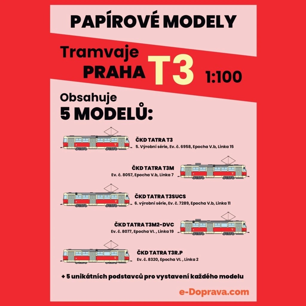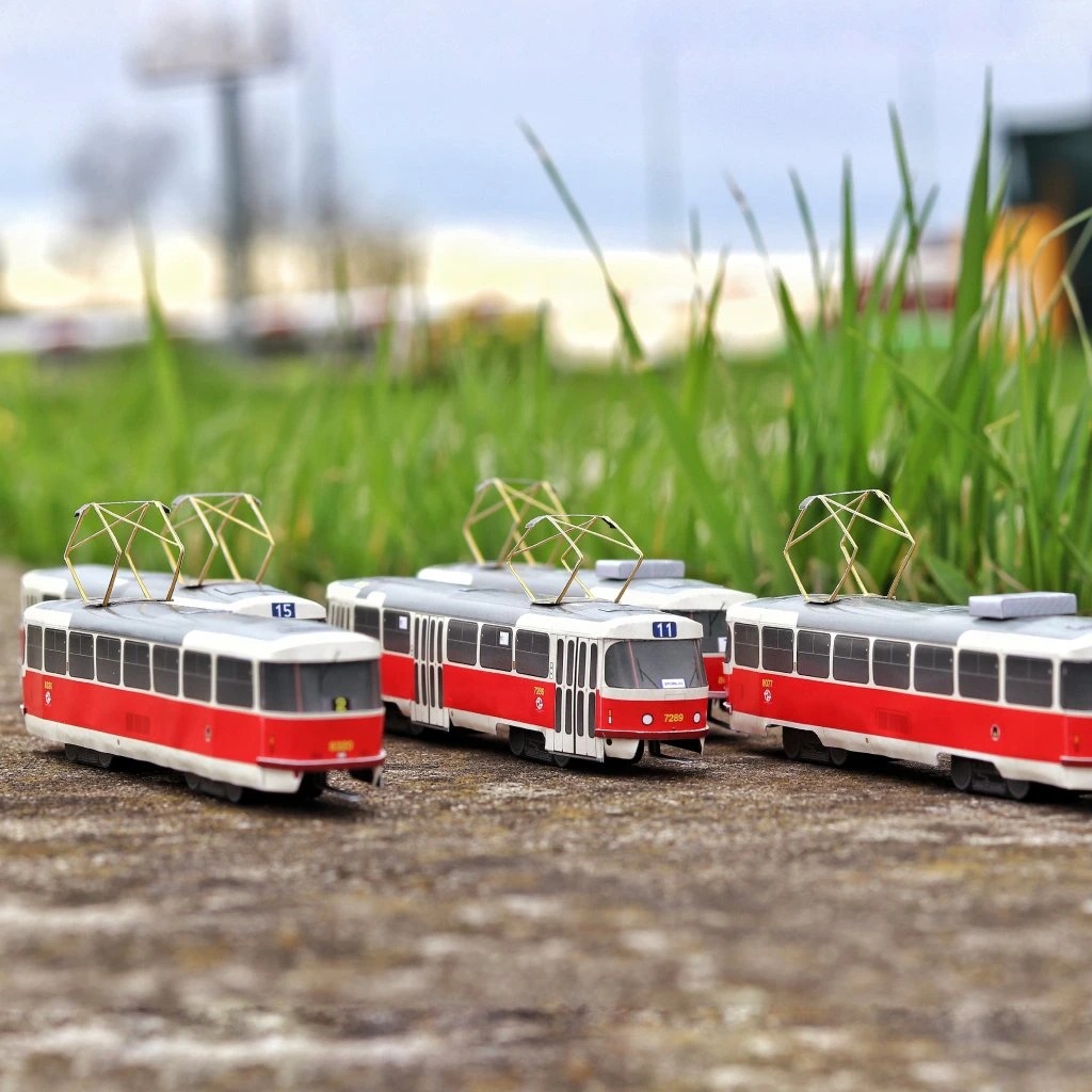 Úvod » Papierové modely » Papierový model - Set 5ks Električky Praha rady T3 1:100