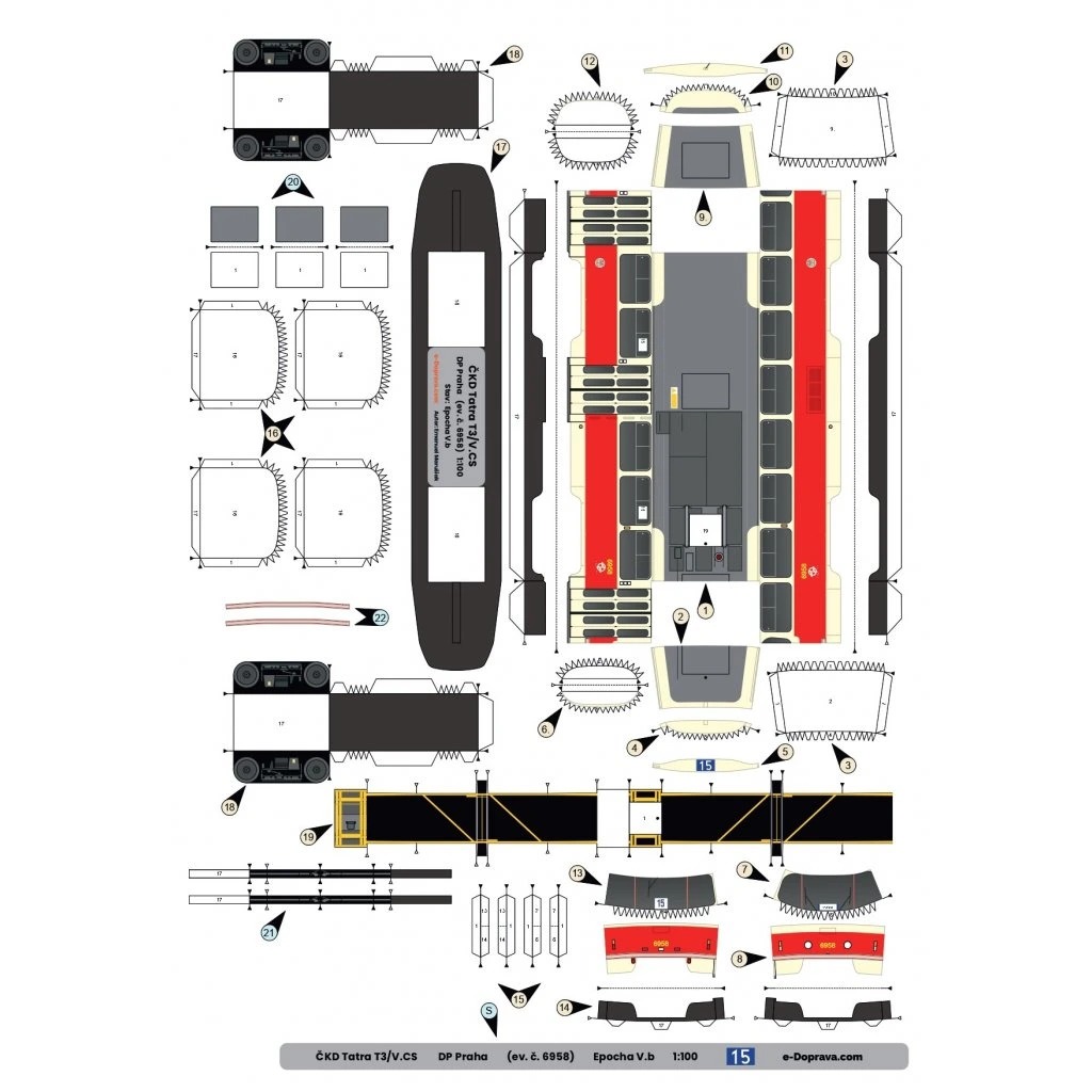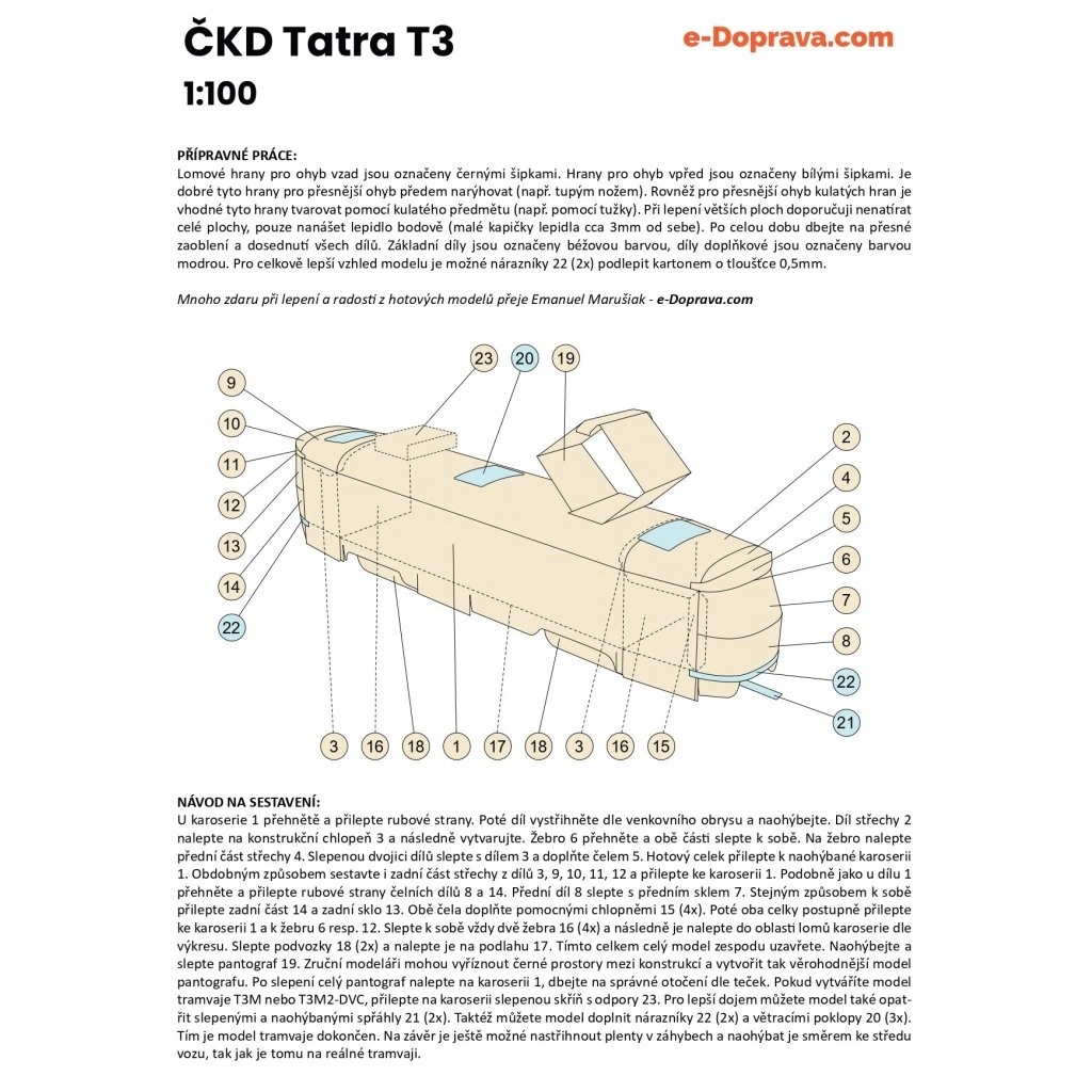 Papierový model má návod v češtine a obsahuje číslované diely a je tlačený digitálom na stranách A4. Model je tlačený na papieri s gramážou 130g/m2,najvhodnejšia gramáž pre papierové modely 1:100