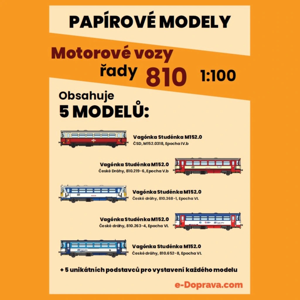Úvod » Papierové modely » Papierový model - Set 5ks Motorové vozy 810 I. 1:100