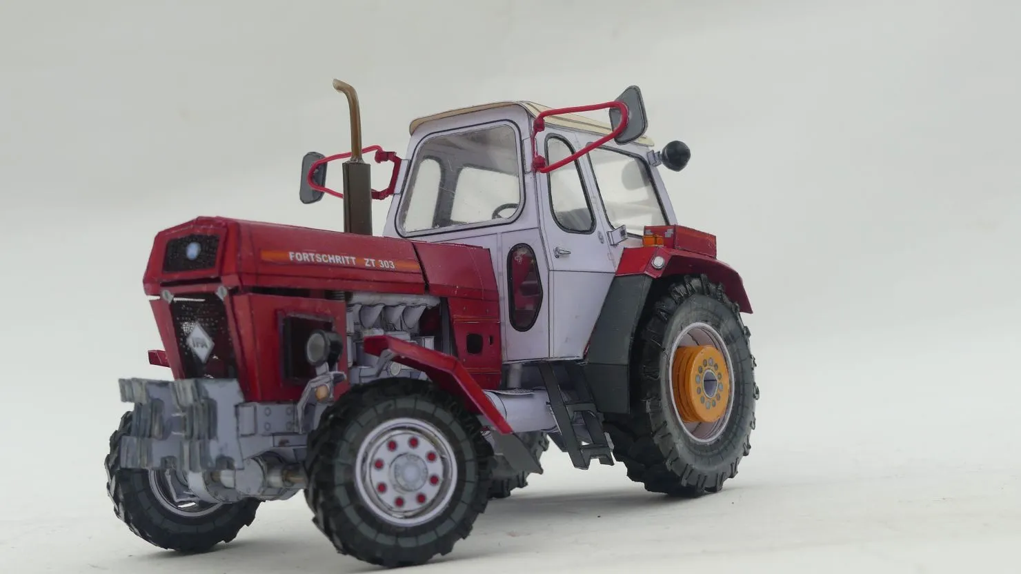 Modelárov, ktorí sú skúsenejší, poteší varianta s interiérom kabíny traktoristu. Interiér, môžete podľa vlastnej úvahy vnútorné časti vynechať.