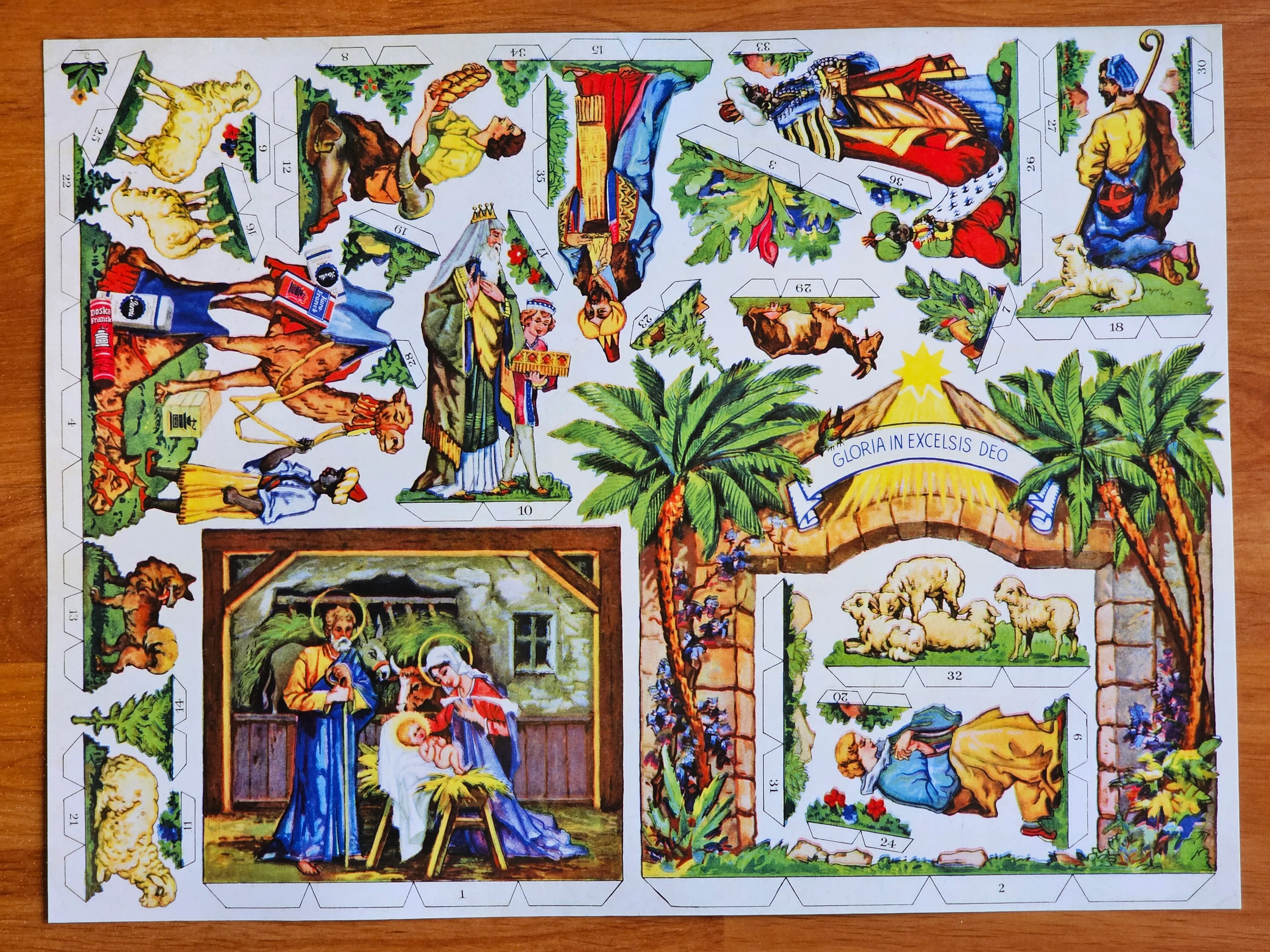 Farebná obojstranná tlač na tvrdý kriedový papier, formát reprintov väčší ako A3. Na jednej strane sa nachádzajú betlehemové figúrky, na druhej strane dobová reklama na kávoviny vrátane návodu na zostavenie.