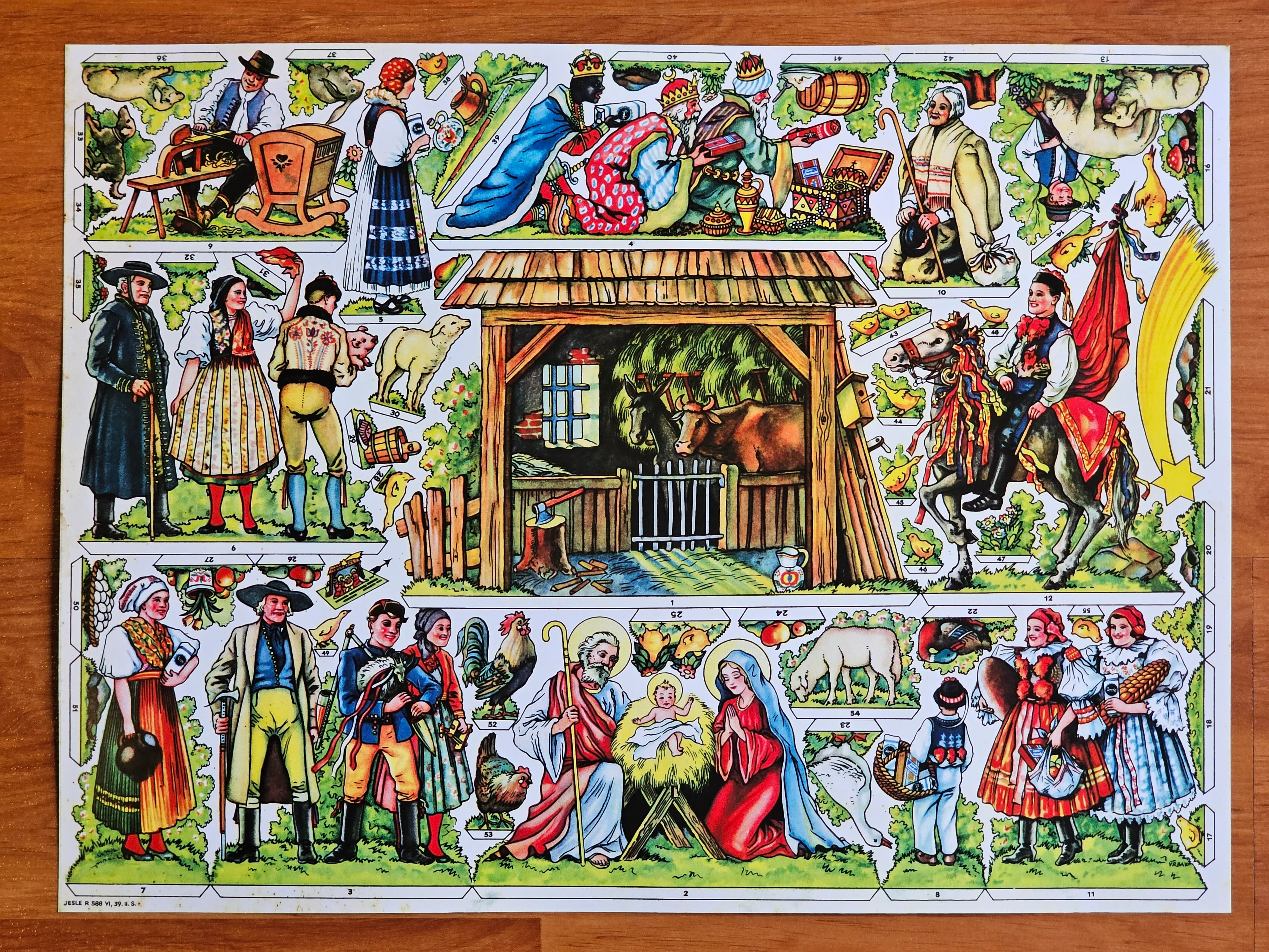 Tlačou vydané papierové betlehemy z obdobia prvej republiky – reprinty nevystihnutých originálnych hárkov uložených v archíve Múzea technických hračiek.