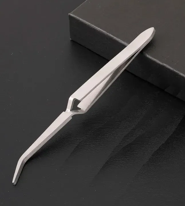 Samozatváracia pinzeta z nehrdzavejúcej ocele so zahnutým koncom. Pinzeta výborne sadne do ruky a vďaka samozatváraniu sa vám bude s vecami manipulovať ľahšie, bez toho aby vás boleli prsty.