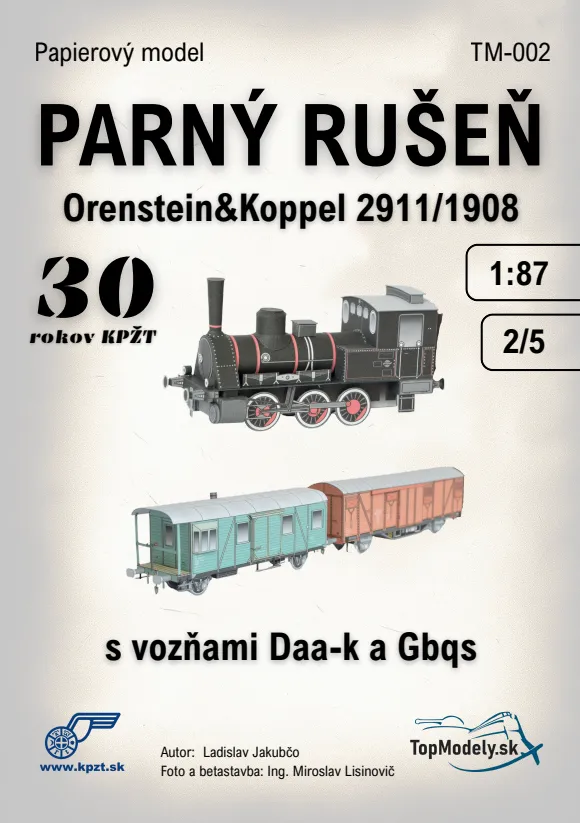 Na výstave Plastiková zima 2025 predstavíme výnimočný papierový model, ktorý spája technickú precíznosť, historickú vernosť a komunitnú hrdosť. Parný rušeň Orenstein&Koppel 2911/1908 s vozňami Daa-k a Gbqs je výročnou poctou Klubu priateľov železníc Trnavy a okolia (KPŽT), ktorý v roku 2026 oslavuje 30 rokov svojej aktívnej činnosti. Model navrhol renomovaný autor Ladislav Jakubčo a vydalo ho slovenské vydavateľstvo TopModely.sk – s dôrazom na kvalitu, tradíciu a slovenský pôvod.