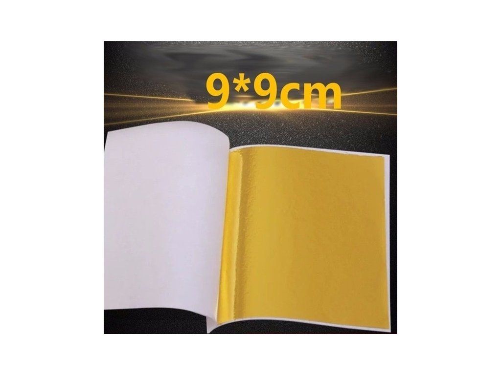 Zlatá kovová fólia na zlátenie o rozmere 9x9 cm.