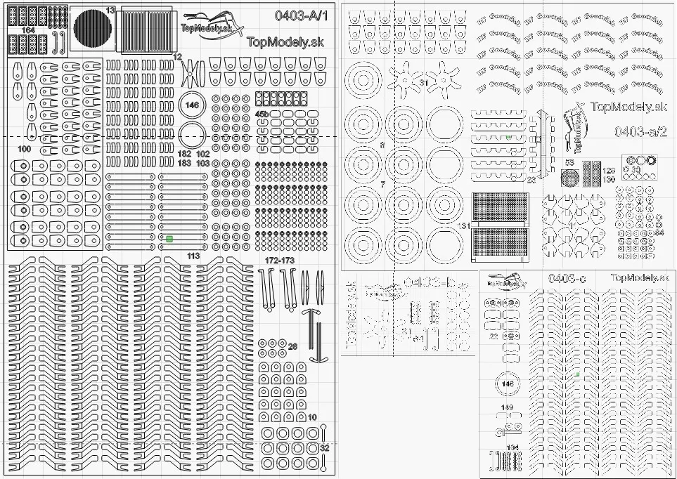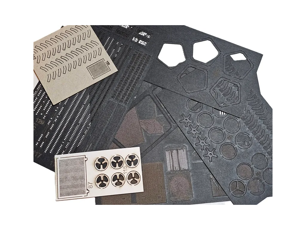 Doplnok je laserom vypálený do špeciálneho uhlíkového papiera hrúbky 0,35mm a kartonu o hrubke 0,5mm a pivného kartónu 1mm. Je možné ho použiť priamo, či nafarbiť ho. Niektoré diely sú voliteľne použitelné a sú pálené vo viacerích hrúbkach. Niektoré nahrádzajú diel a niektoé ho dopĺňajú.