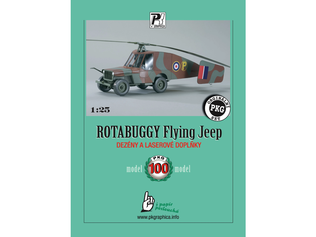 Modelárov, ktorí sú skúsenejší, potešia tieto doplnky vytvorené priamo v PK Grafika pre ich model Rotabuggy - Flying Jeep. Sú vypálené do papiera pomocou laseroveho lúču.