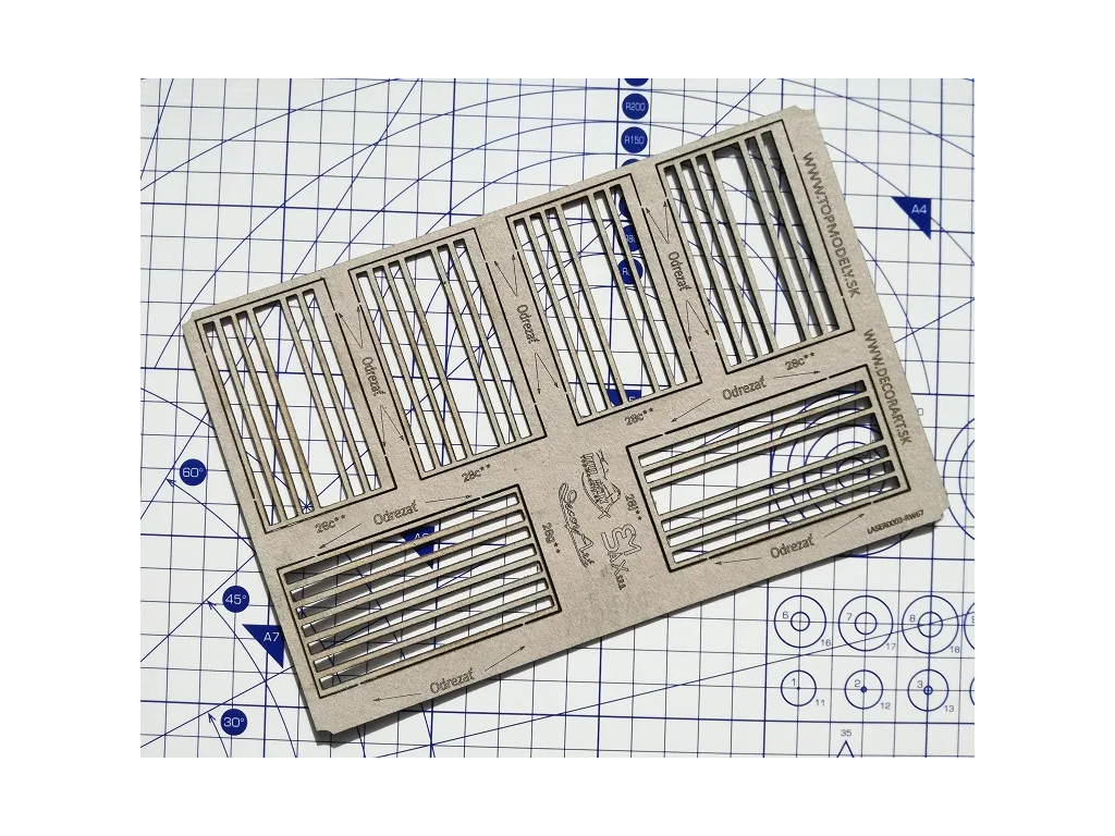 Doplnok je laserom vypálený do Pivného kartónu hrúbky 1mm. Je možné ho použiť priamo, alebo ako podlepenie dielu, či nafarbiť ho.