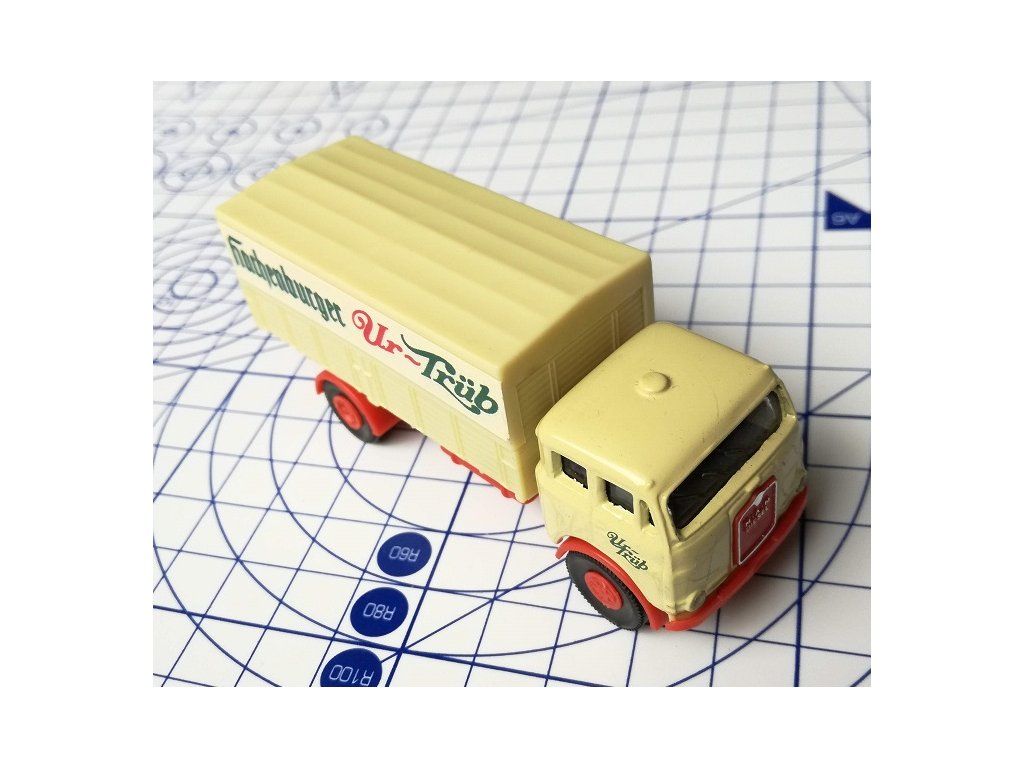 Model Nákladiaku MAN WG212. Nákladiak je reklamného charakteru Hachenburger Ur-Trub. Kabína je kovová korba a podvozok plastový.