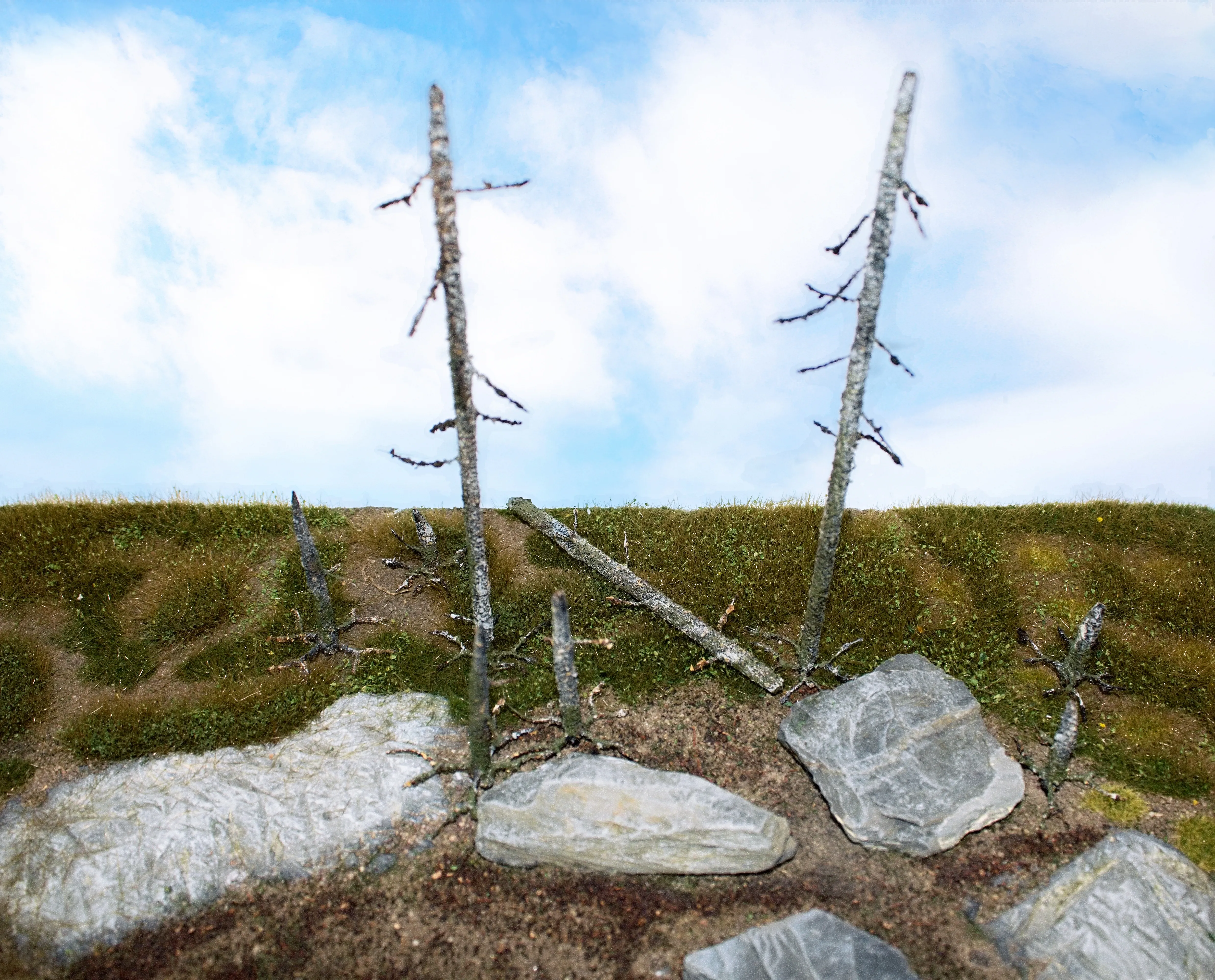 Balenie obsahuje 9 ks stromčeka bez trávy a ďalších doplnkov. Dioráma na fotografii slúži iba na lepšie znázornenie veľkosti stromčeka a pre ilustráciu jeho použitia.