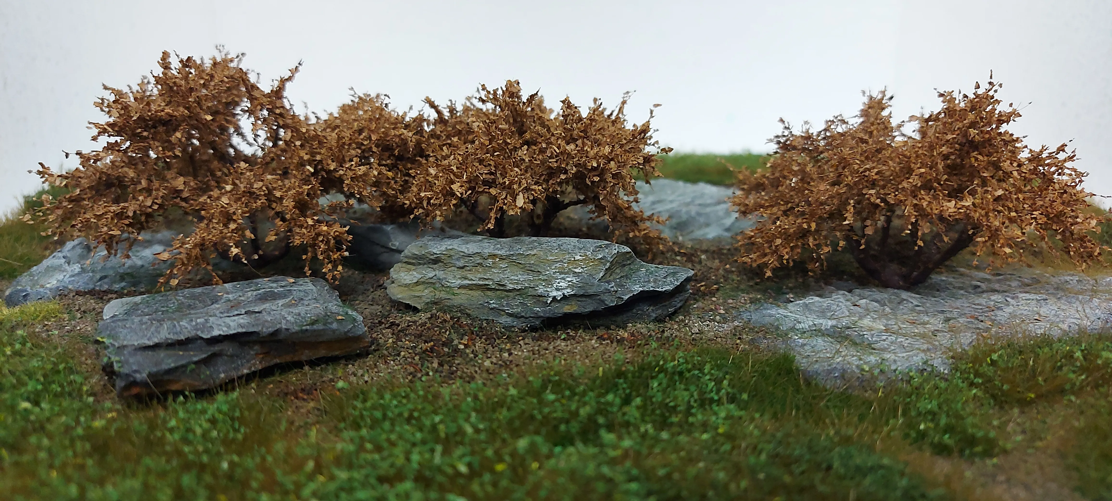 Balenie obsahuje 3 ks kríkov bez trávy a ďalších doplnkov. Dioráma na fotografii slúži iba na lepšie znázornenie veľkosti kríku a pre ilustráciu jeho použitia.