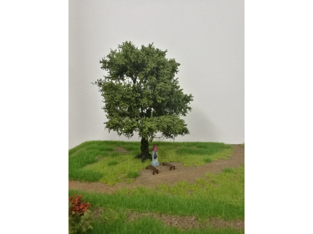 Balenie obsahuje 1 ks stromčeka bez trávy a ďalších doplnkov. Dioráma na fotografii slúži iba na lepšie znázornenie veľkosti stromčeka a pre ilustráciu jeho použitia.