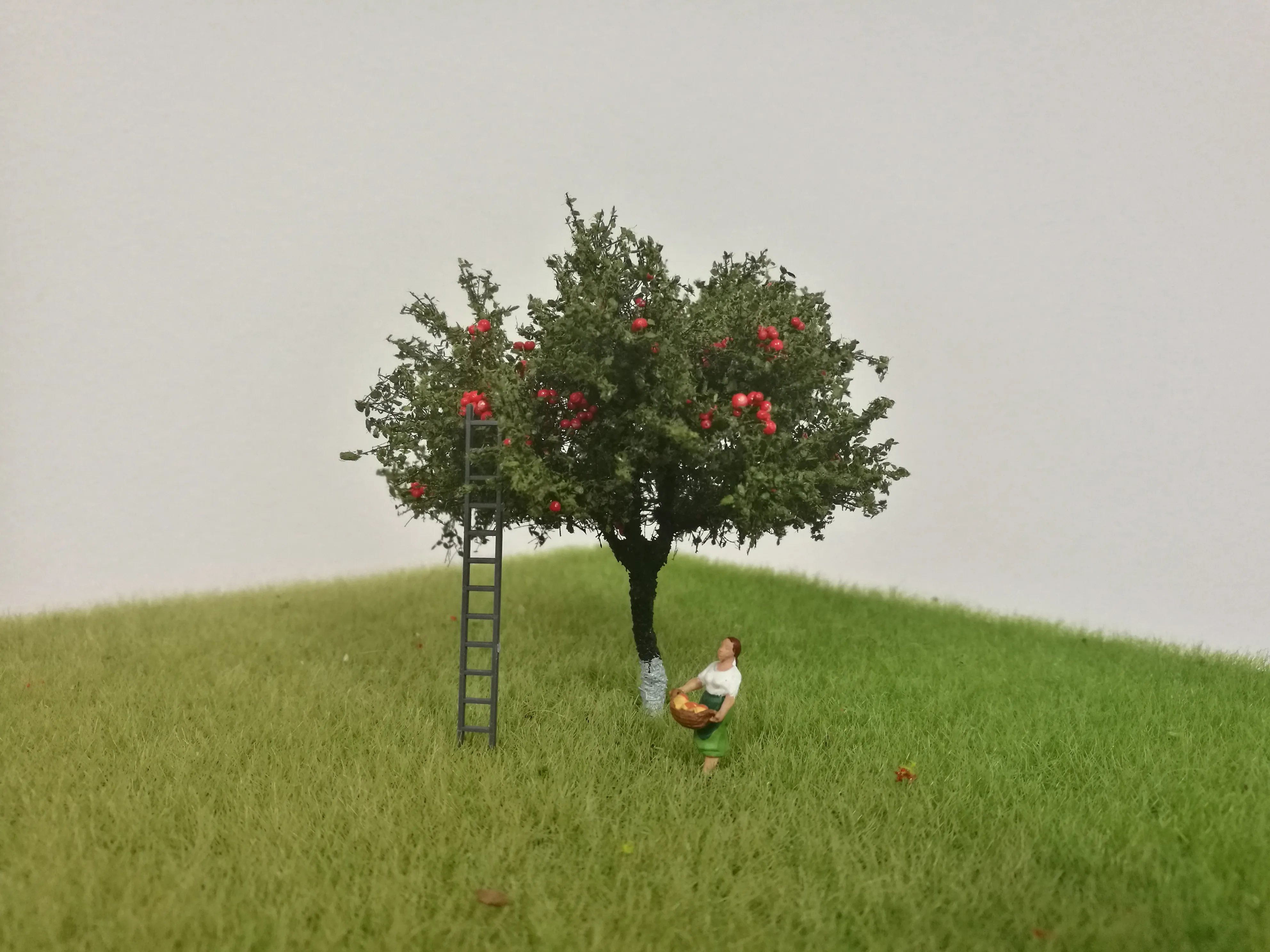 Balenie obsahuje 4 ks stromčeka bez trávy a ďalších doplnkov. Dioráma na fotografii slúži iba na lepšie znázornenie veľkosti stromčeka a pre ilustráciu jeho použitia.