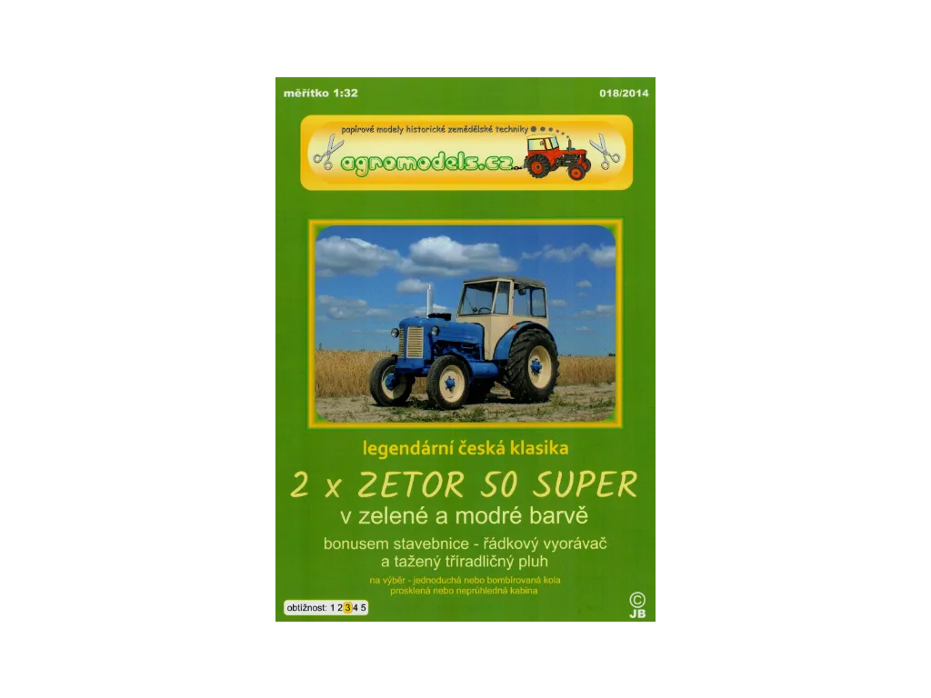 Nepostavený papierový model stavebnica, vystrihovačka 2x model traktora Zetor 50 Super od špičkového výrobcu papierových modelov poľnohospodárskej techniky Agromodels.