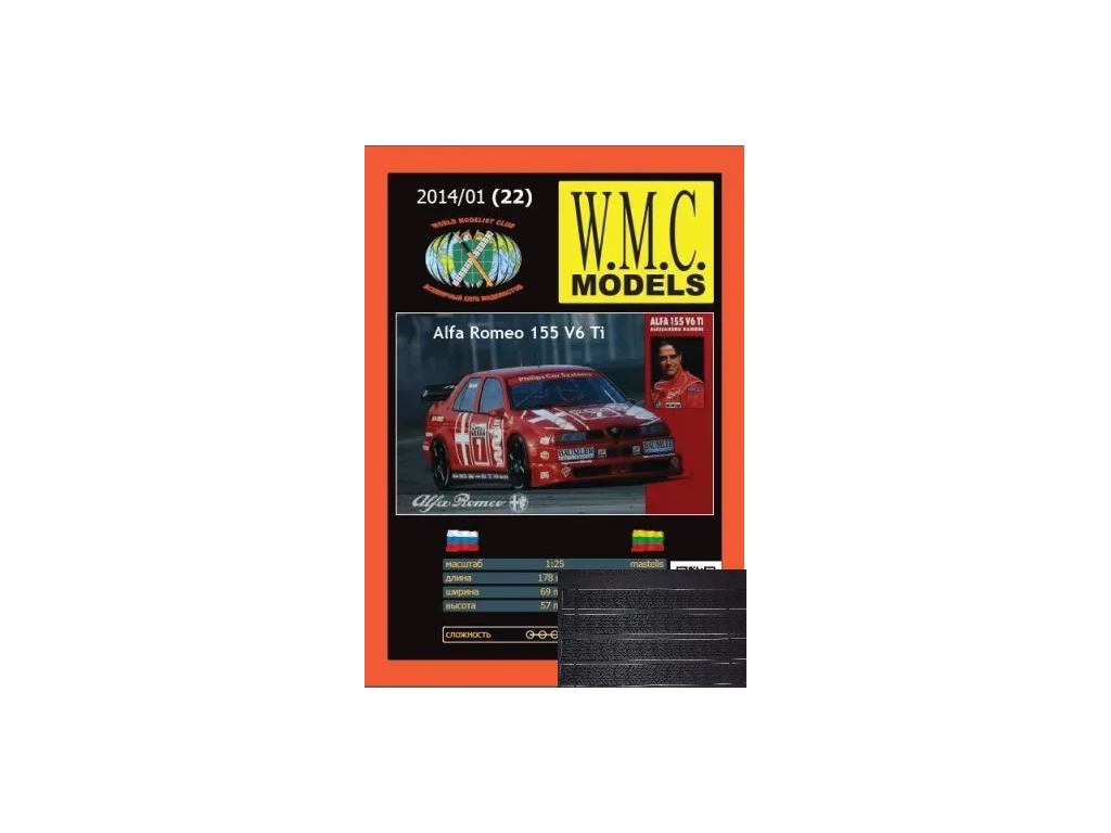 Papierový model osobného závodného automobilu Alfa Romeo 155 V6 Ti + laserom pálený dezén od W.M.C Models.