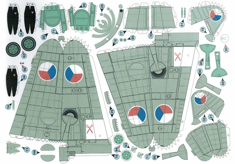 Nepostavený papierový model, stavebnica, vystrihovačka stíhač Avia S-99 (Messerschmitt Bf-109G-10)