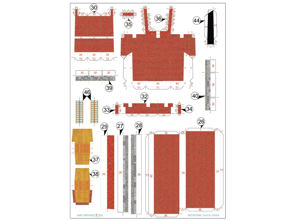 Papierový model má návod v češtine a obsahuje číslované diely a je tlačený na stranách A4. Farba sa nerozpíja a neodlupuje pri následnej práci a je UV stála.