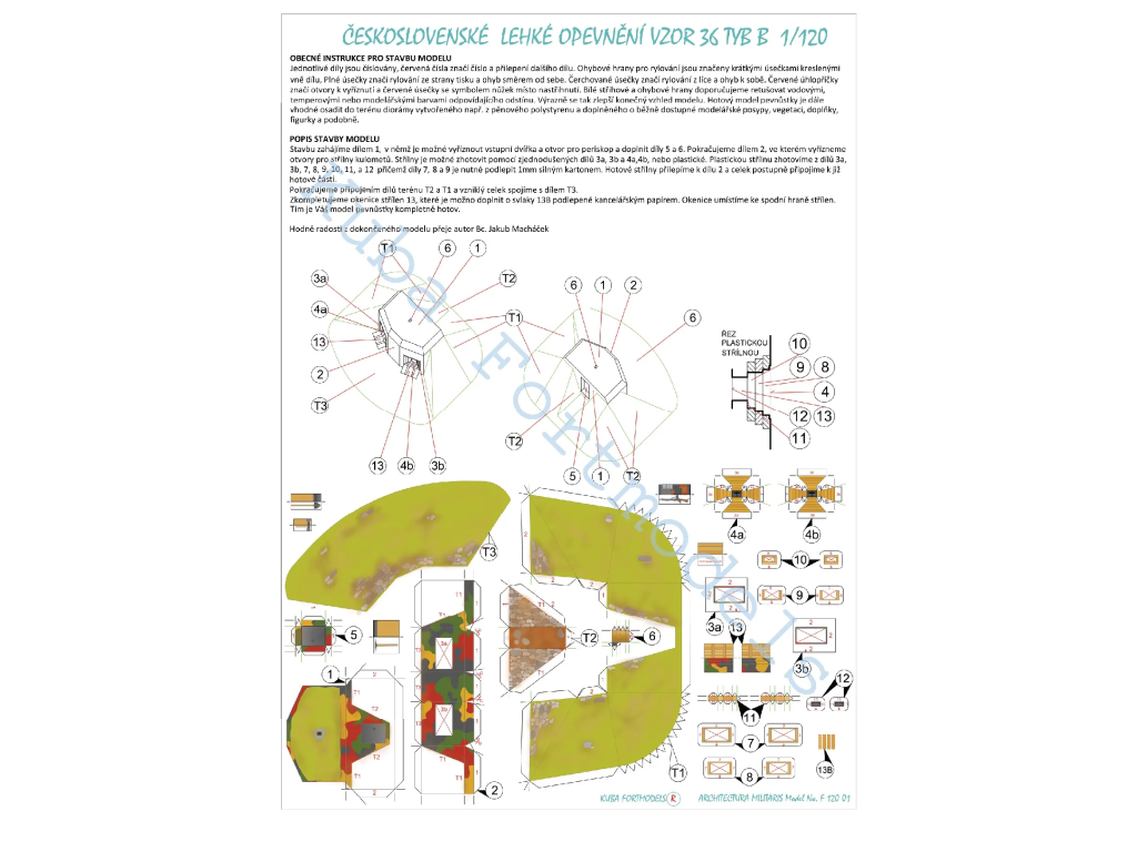 Papierový model - ČESKOSLOVENSKÉ ĽAHKÉ OPEVNENIE vzor 36 typ B 1:120
