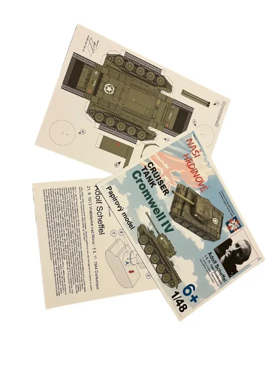 Nepostavený papierový model, stavebnica, vystrihovačka Cruiser Tank Cromwell IV - Scheffel - naši hrdinové.