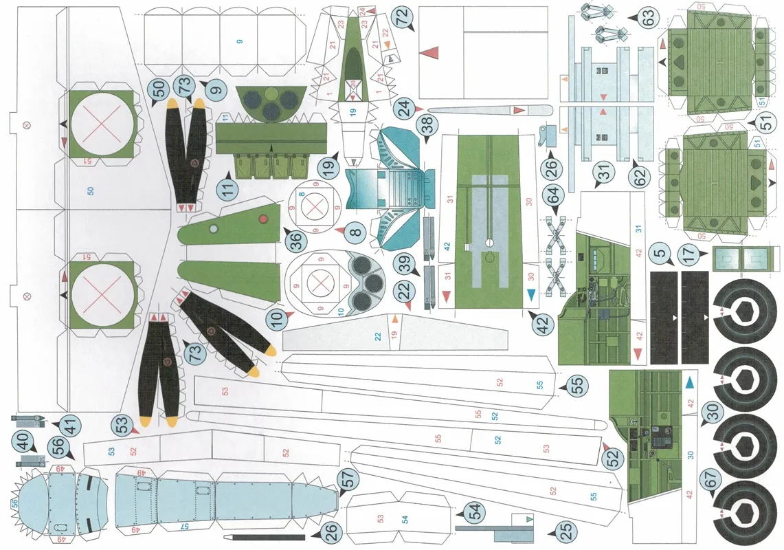 Papierový model obsahuje číslované diely a je tlačený atramentovou tlačou na 3 stranách A4, na papieri s gramážou 160-200g/m2, teda dvojnásobnej hrúbke kancelárskeho papiera (tzv. modelárska štvrťka). Tento papier je štandardne používaný výrobcami modelov, pretože je na prácu najvhodnejší.
