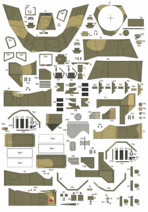 Papierový model má návod v Polštine a obsahuje množstvo farebných, číslovaných dielov a je tlačený ofsetom na stranách B4. Ofset je tlačová technika, pri ktorej sa farba na papier nanáša z tlačového valca, pomocou gumového valca, pretože guma sa lepšie priľne na nerovnosti papiera a dokáže teda vytlačiť aj najjemnejšie detaily. Narozdiel od atramentovej či laserovej tlače sa nerozpíja a neodlupuje pri následnej práci. Model je vytlačený na papieri s gramážou 160g/m2, teda dvojnásobnej hrúbke kancelárskeho papiera (tzv. modelárska štvrťka). Tento papier je štandardne používaný výrobcami modelov, pretože je na prácu najvhodnejší.