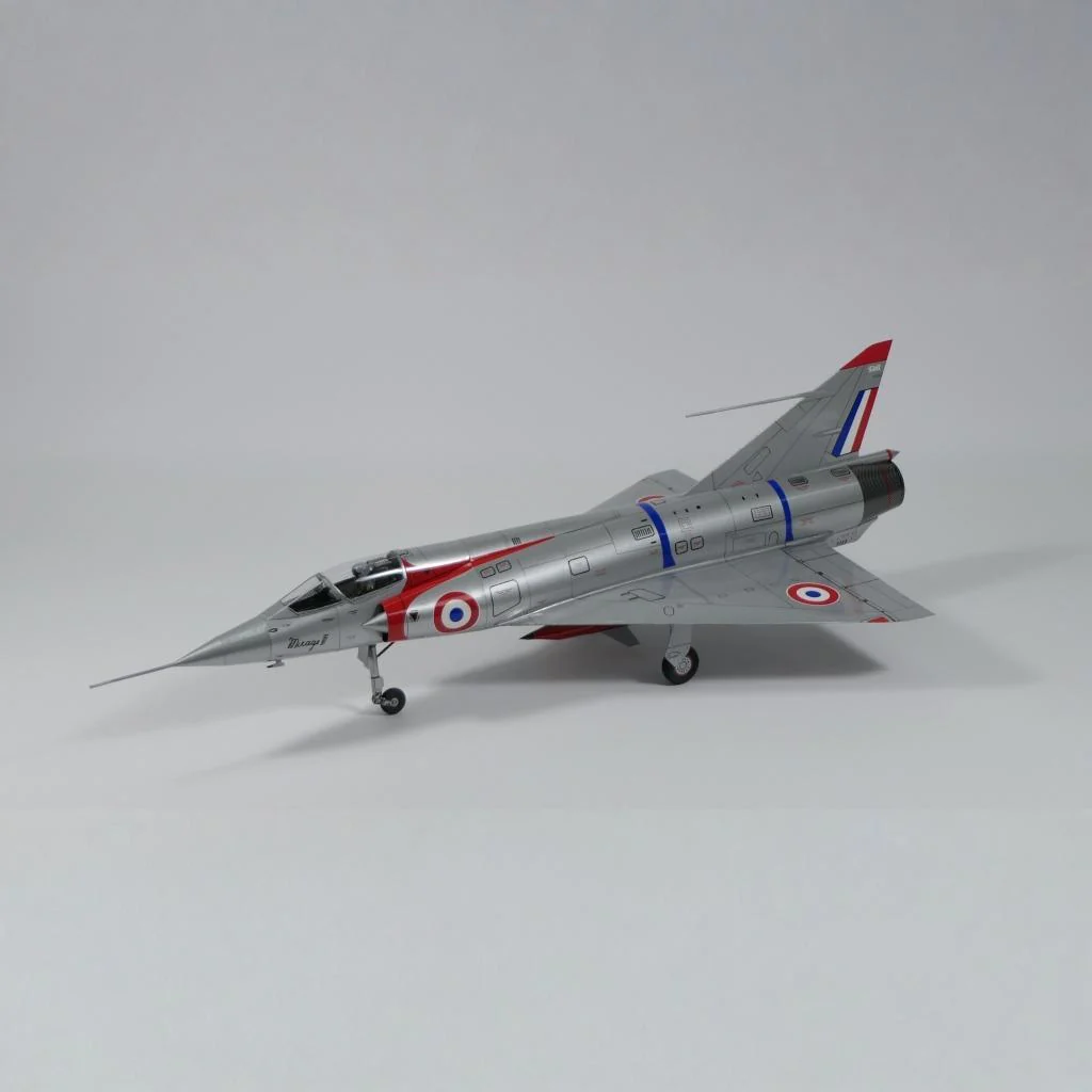 Nepostavený papierový model Mirage III – francúzsky nadzvukový stíhač.