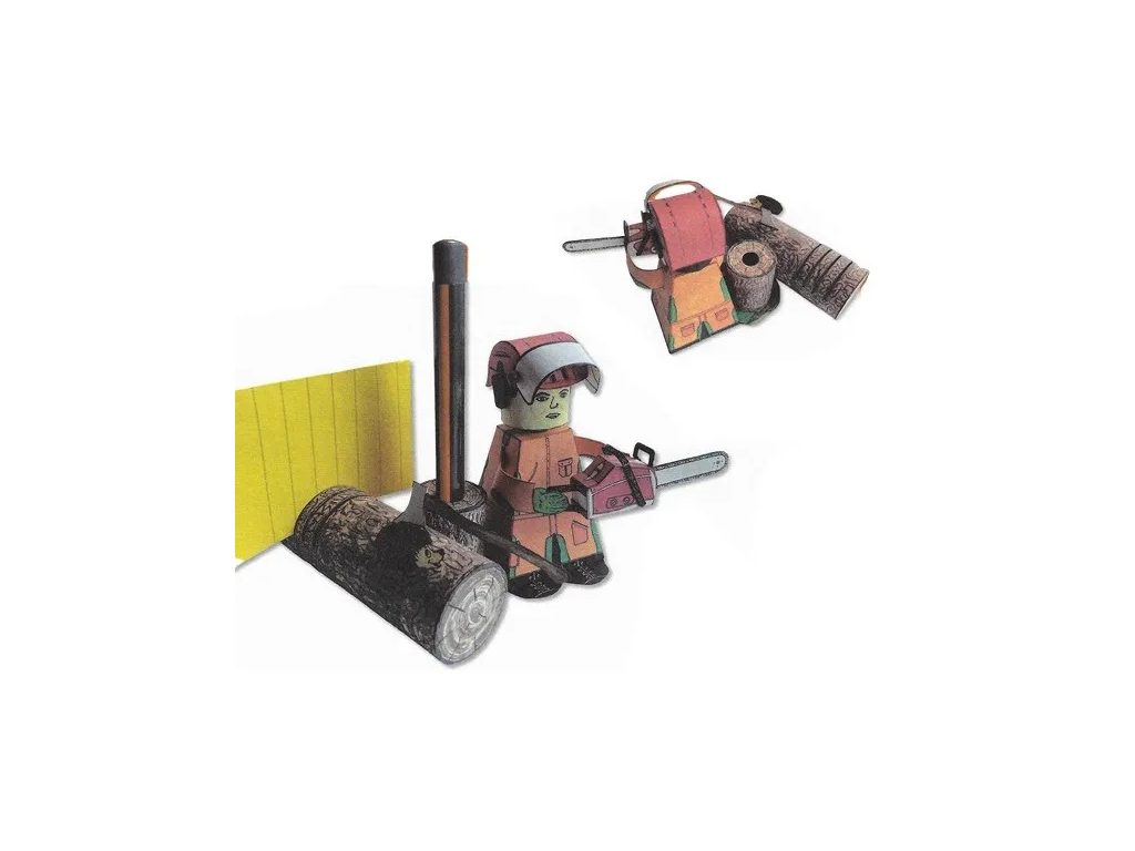 Nepostavený papierový model, stavebnica, vystrihovačka Stojan na perá Drevorubač.