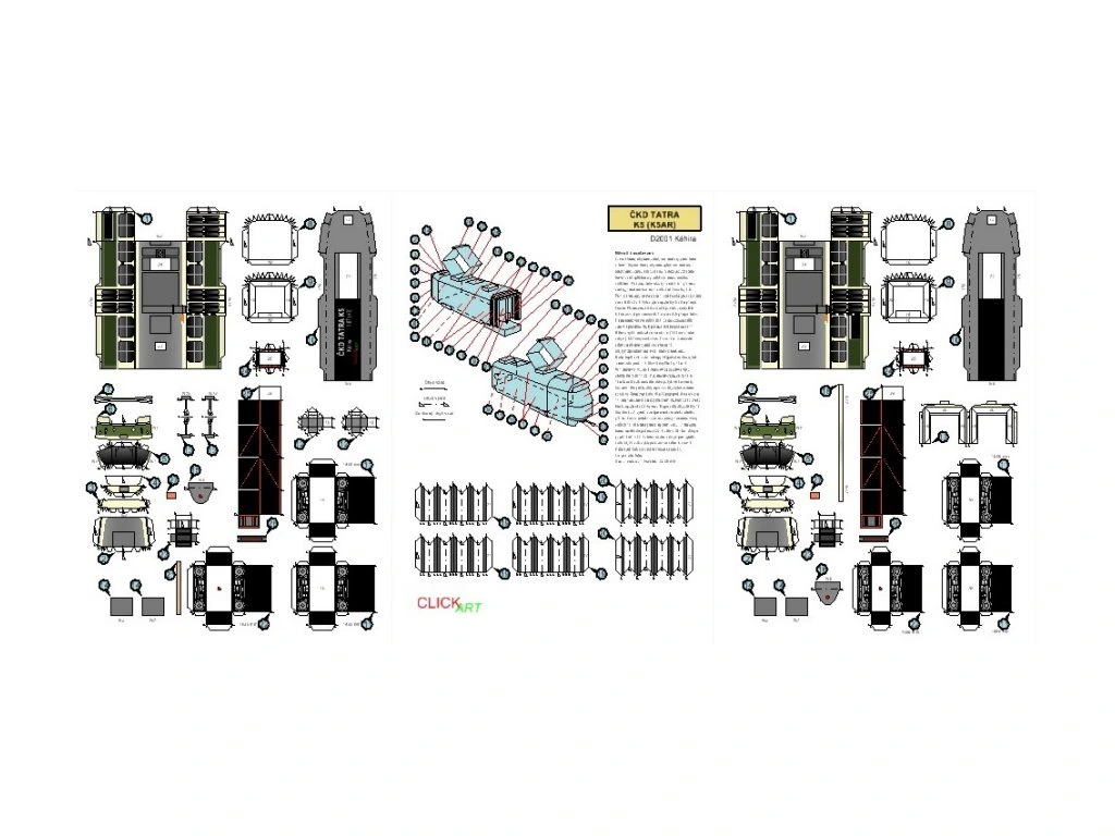 Nepostavená papierová stavebnica Električka ČKD TATRA K5 (K5AR) Cairos Káhira v mierke 1:87 od ClickArt.