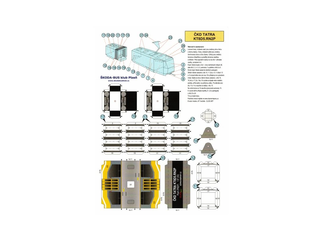 Nepostavená papierová stavebnica Električka ČKD TATRA KT8D5.RN2P Plzeň v mierke 1:87 od ClickArt.