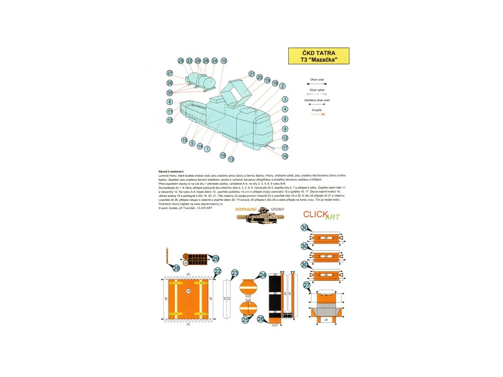 Papierový model má návod v češtine a obsahuje číslované diely a je tlačený Digitálom na stranách A4. Model je tlačený na papieri s gramážou 140g/m2. Tento papier je štandardne používaný výrobcami modelov, n abudovy, pretože je na prácu najvhodnejší.