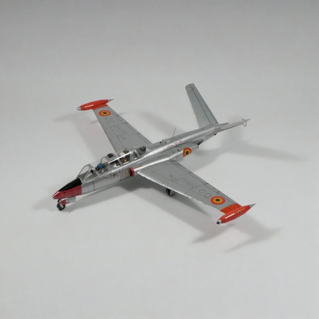 Nepostavený papierový model Fouga Magister – elegantný francúzsky cvičný prúdový stroj.