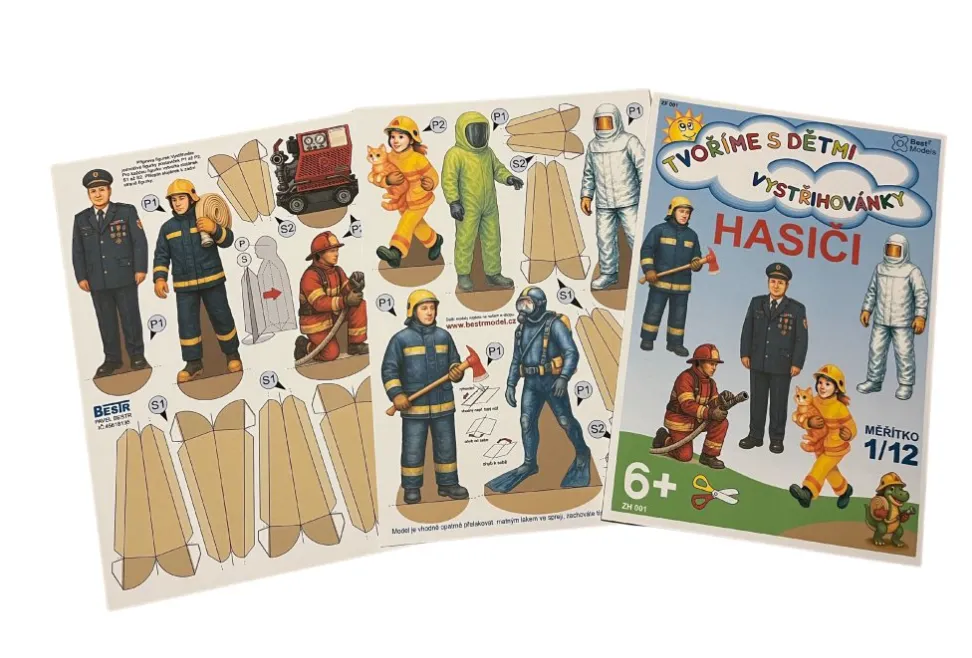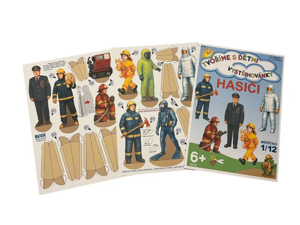 Nepostavený papierový model, stavebnica, vystrihovačka Hasiči - postavičky.
