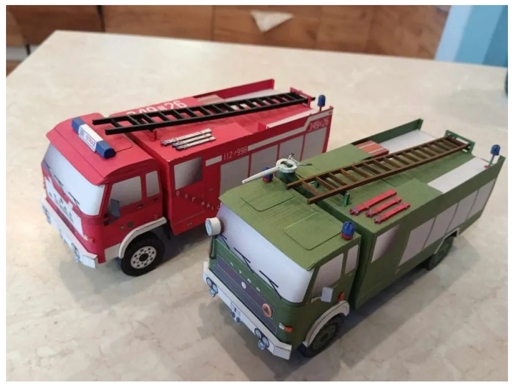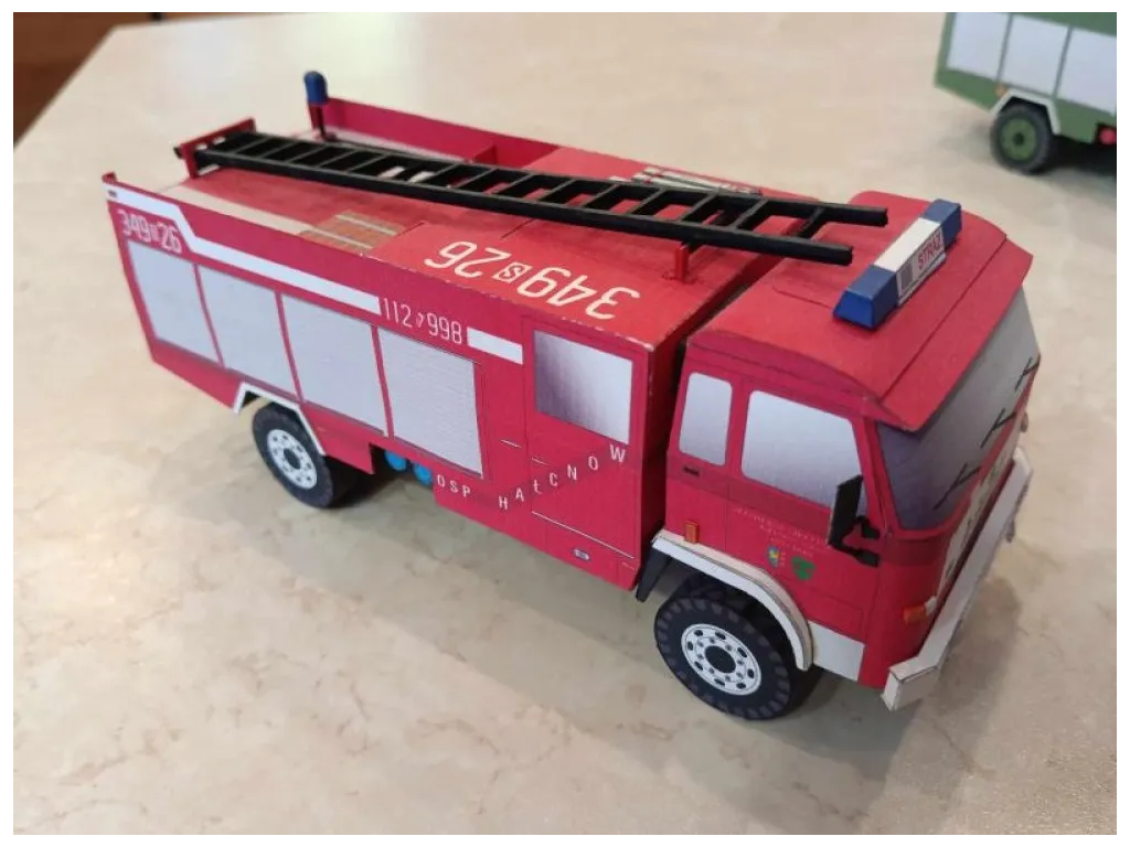 Nepostavený papierový model poľského vydavateľstva Orlík - Hasičské auto Jelcz 005M na podvozku Star 244L - Dobrovoľný hasičský zbor Bielsko-Biała Hałcnów.