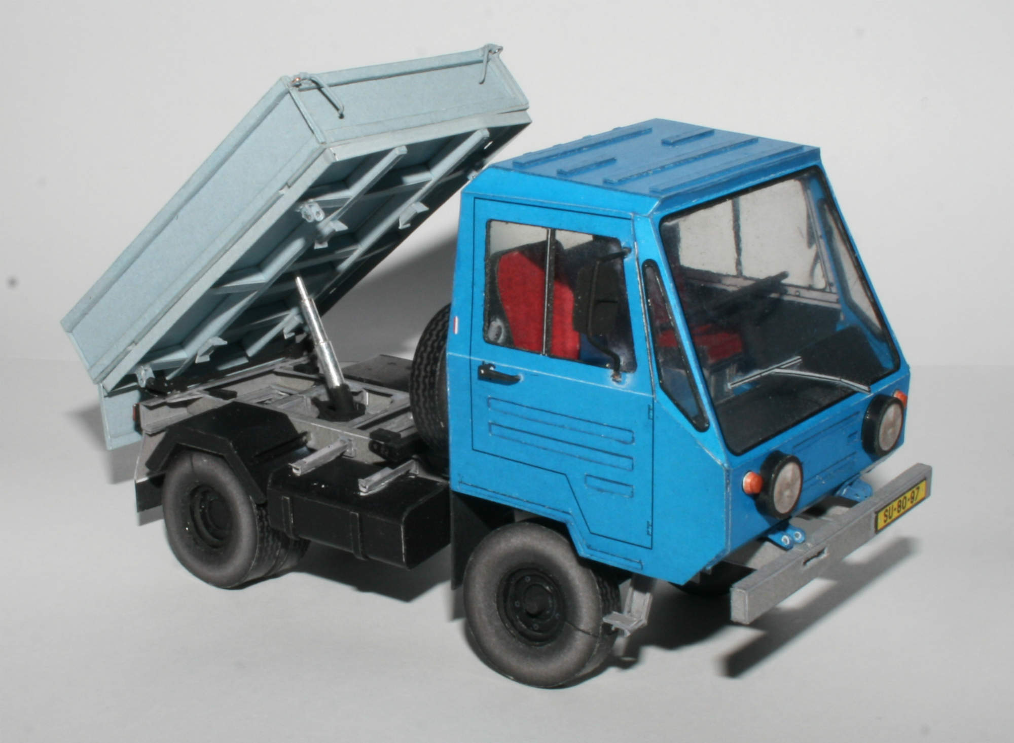 Nepostavený papierový model IFA Multicar M 25 s nástavbou trojstranného sklápača.