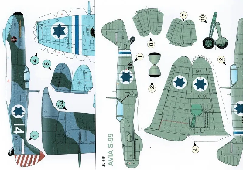 Dva nepostavené papierové modely, stavebnice, vystrihovačky Israeli Air Force 1948 - Spitfire Mk IX a AVIA S-99.