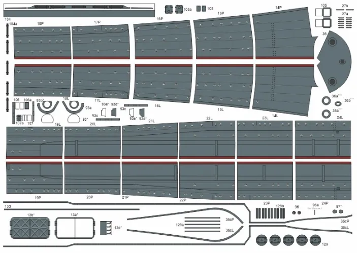 Niektoré diely vydavateľ doporučuje podlepiť modelárskym kartónom A3 0,2 / 0,5 / 1mm alebo 2mm hrúbky, ktorý sa nachádza tak isto v našej ponuke.