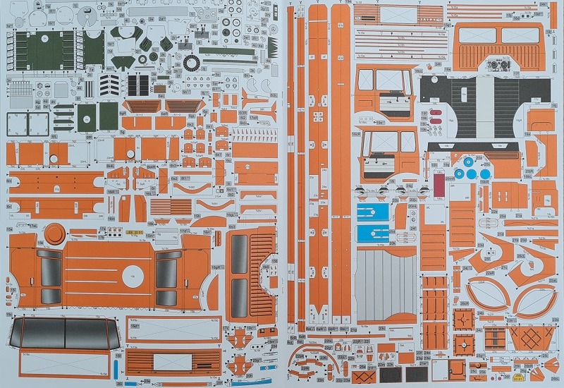 Papierový model je tlačený ofsetom. Ofset je tlačová technika, pri ktorej sa farba na papier nanáša z tlačového valca pomocou gumového valca, pretože guma sa lepšie priľne na nerovnosti papiera a dokáže teda vytlačiť aj najjemnejšie detaily. Narozdiel od atramentovej či laserovej tlače sa nerozpíja a neodlupuje pri následnej práci. Model je vytlačený na papieri s gramážou 160g/m2, teda dvojnásobnej hrúbke kancelárskeho papiera. Tento papier je štandardne používaný výrobcami modelov, pretože je na prácu najvhodnejší. Model je zostavený z cca 1045 dielov rôznych veľkostí. Niektoré diely je nutné podlepiť modelárskym kartónom 0,2 / 0,5 alebo 1mm hrúbky, ktorý sa nachádza tak isto v našej ponuke. Návod obsahuje celkom 18 trojrozmerných návodových kresieb pre čo najjednoduchšiu stavbu a 4 "péroviek" - detailov.