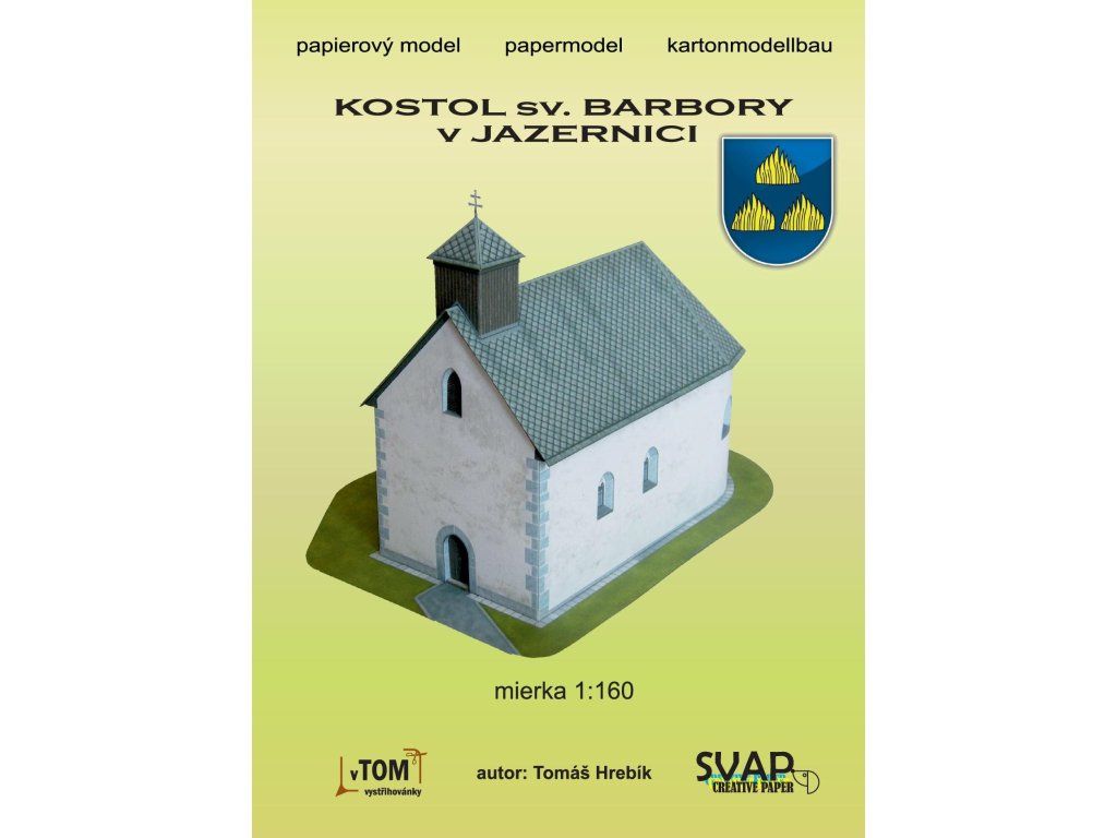 Prinášame vám verne spracovaný papierový model Jednoloďový kostolík s polkruhovým ukončením svätyne a severnou sakristiou sv. Barbory v Jazernici.