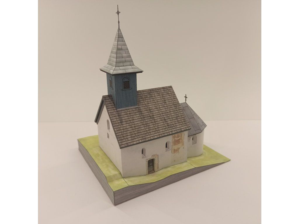 Nepostavený papierový model, vystrihovačka: Neskoro románsky kostol sv. Kozmu a Damiána z Kšinnej na Slovensku. Papierový model je možné postaviť v jednoduchšej alebo prepracovanej verzii.