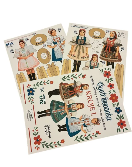Nepostavený papierový model, stavebnica, vystrihovačka Kroje - Ženské.
