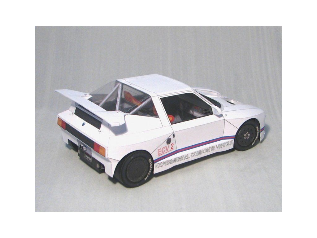 Model experimentálneho špeciálu z kompozitných materiálov pre skupinu S prototyp vo farbách týmu Lancia Martini.