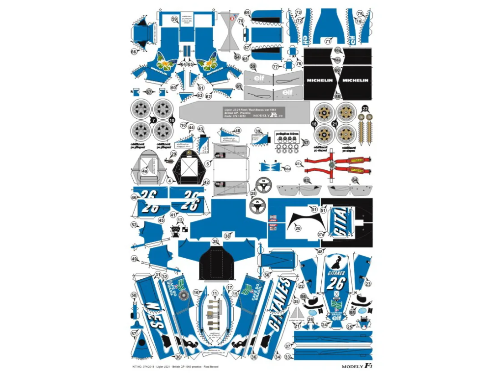 Papierový model Ligier JS21 - British GP 1983 practicle - Raul Boesel